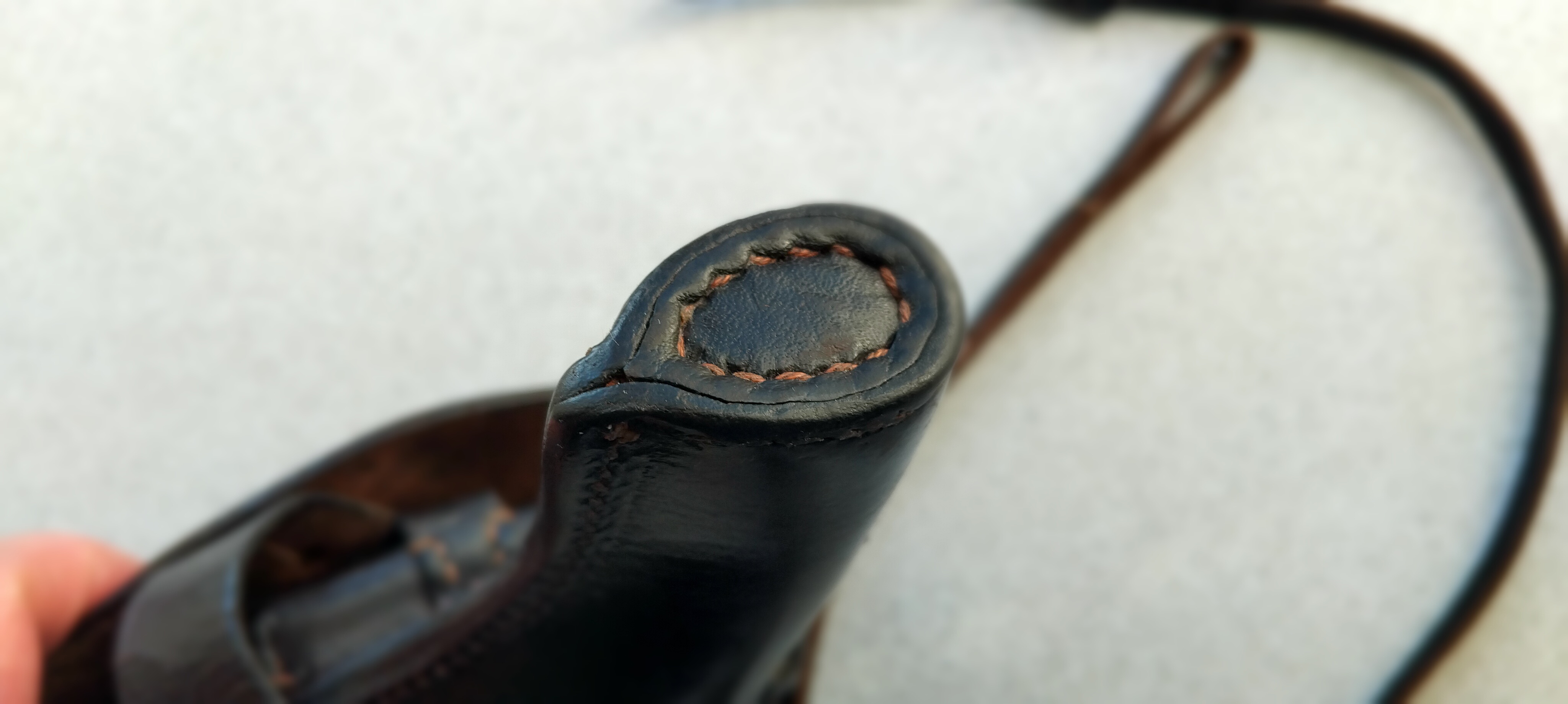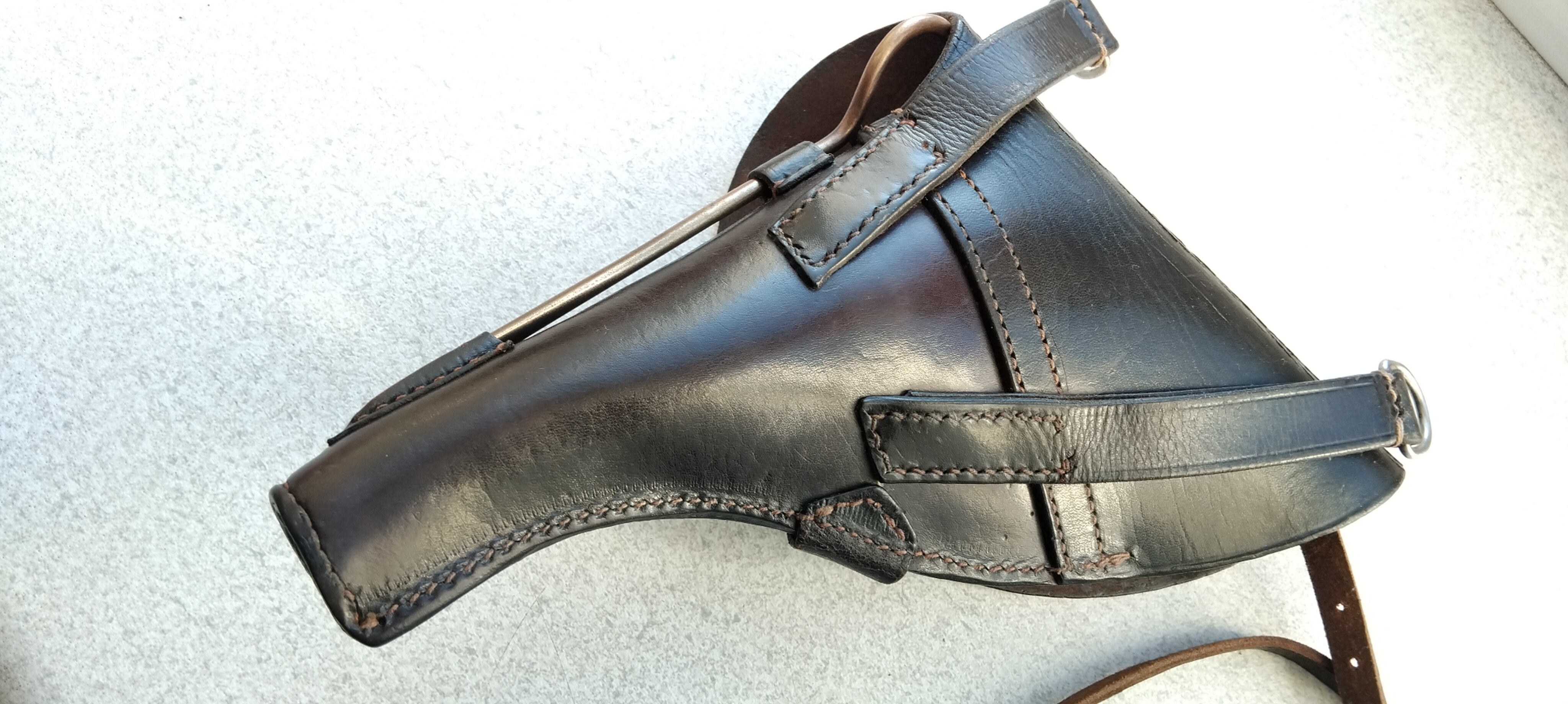 Всем здравия. Прошу оценить кобуру под наган. Кожа в целом хорошего состояния , не дубовая , но и не очень мягкая. Из недостатков - поверхностные микротрещины на сгибе клапана( последнее фото). Заранее спасибо за оценку.