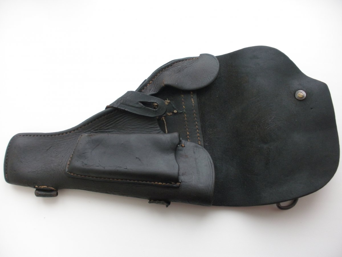 Кобура к офицерскому пехотному снаряжению обр. 32 г. Выпуск второй половины 30х, начала 40х. Изначально кожа была коричневой - после пропитки стала такой не естественно темной. С ув.