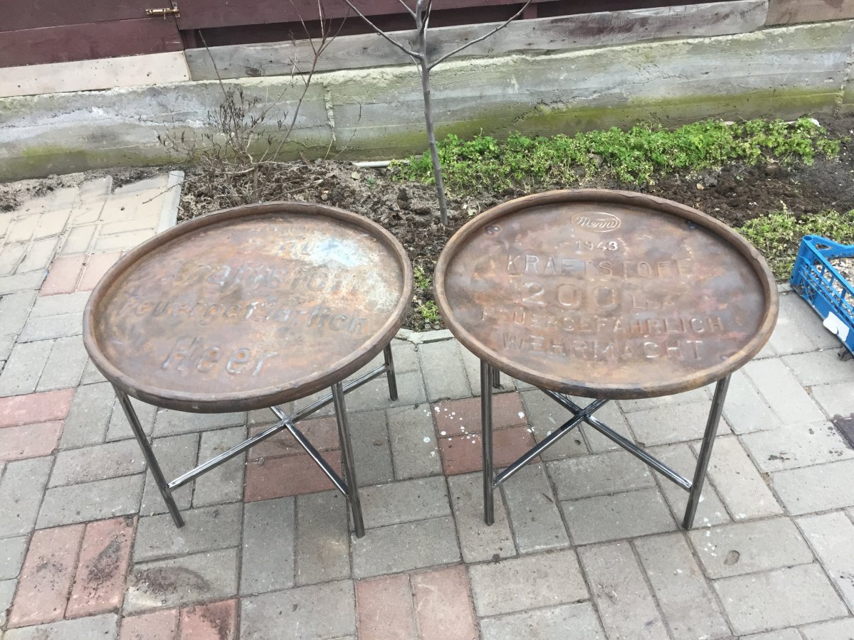 Предлагаю вот такой кофейно -пивной столик из крышки 200 литровой бочки немецкой бочки ,очень удобная вещь для балкона или сада ,сейчас остался вариант 1940 г и Heer, покрасить можно в любой цвет Цена договорная