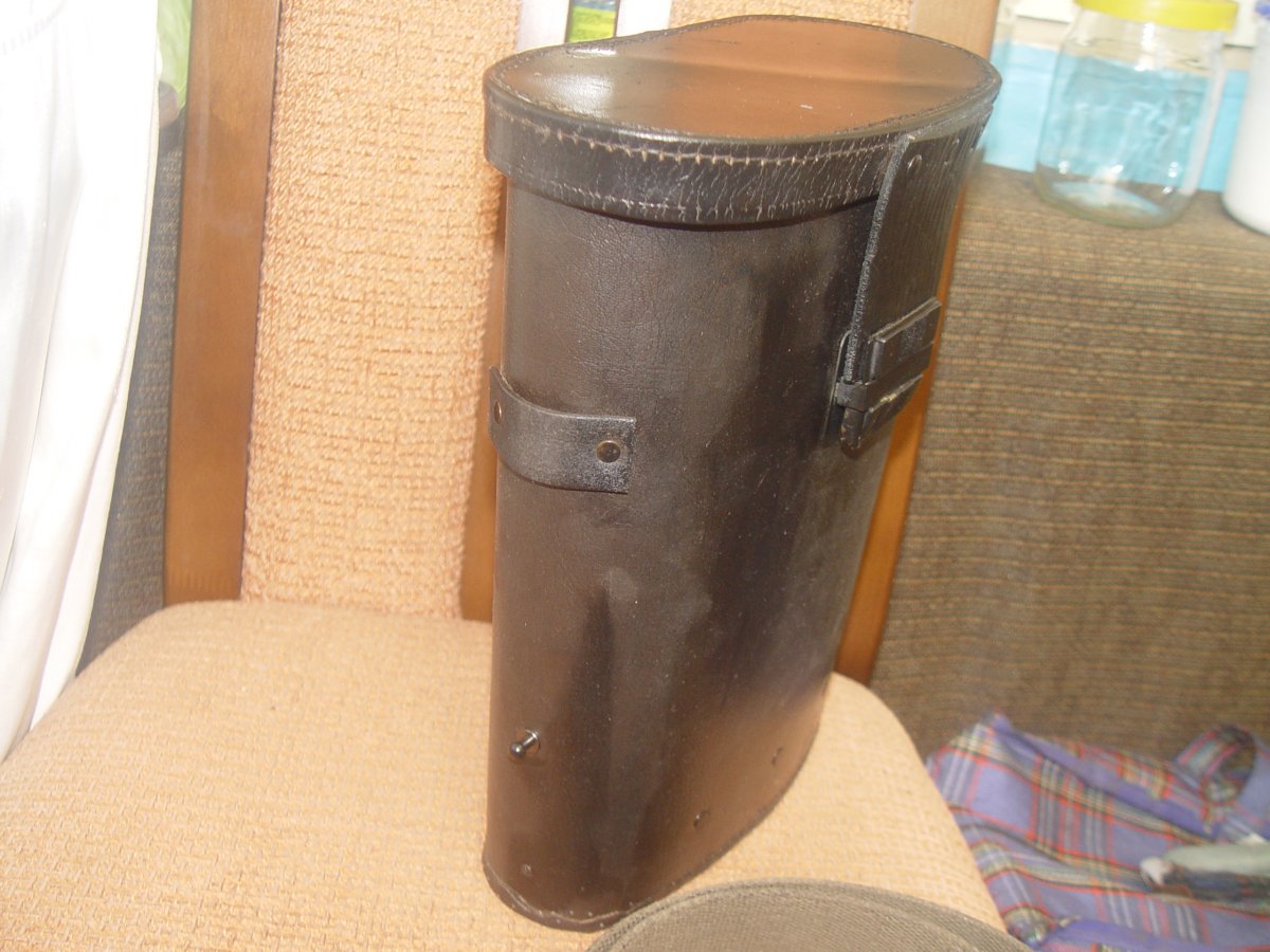 Кофр для бинокля советского периода 20х60 . Корпус из обувного картона снаружи обтянут искусственной кожей . Внутри сукном. Пороги деревянные. Сверху приклеены пластины из мягкой мелкопористой резины.Имеются карманы для светофильтров. Крышка и дно изготовлены из толстого жесткого чепрака толщиной 5 мм . Рант крышки-кожа ременная. Хочу 450 гривен.