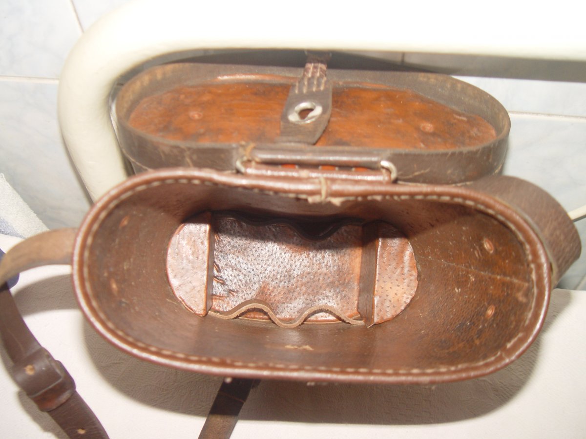 Установлены новые деревянные пороги,предварительно обтянутые кожей. Новая обивка дна (кожа), Ремень из двух ремней от планшетов. Остальное по фото. Подходит для биноклей с диаметром объективов 50, но без резиновых и кожаных бленд на объективах.Карманы для светофильтров новые. 600 гривен.