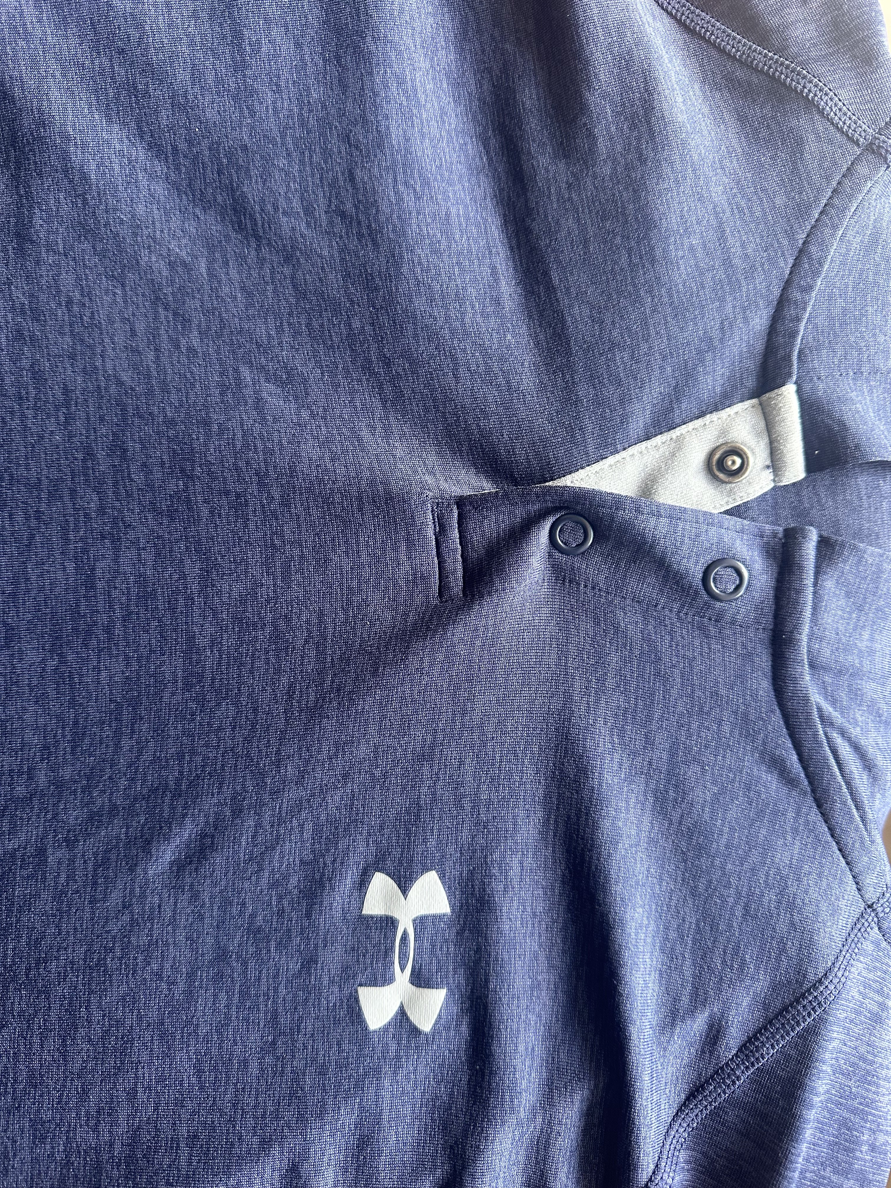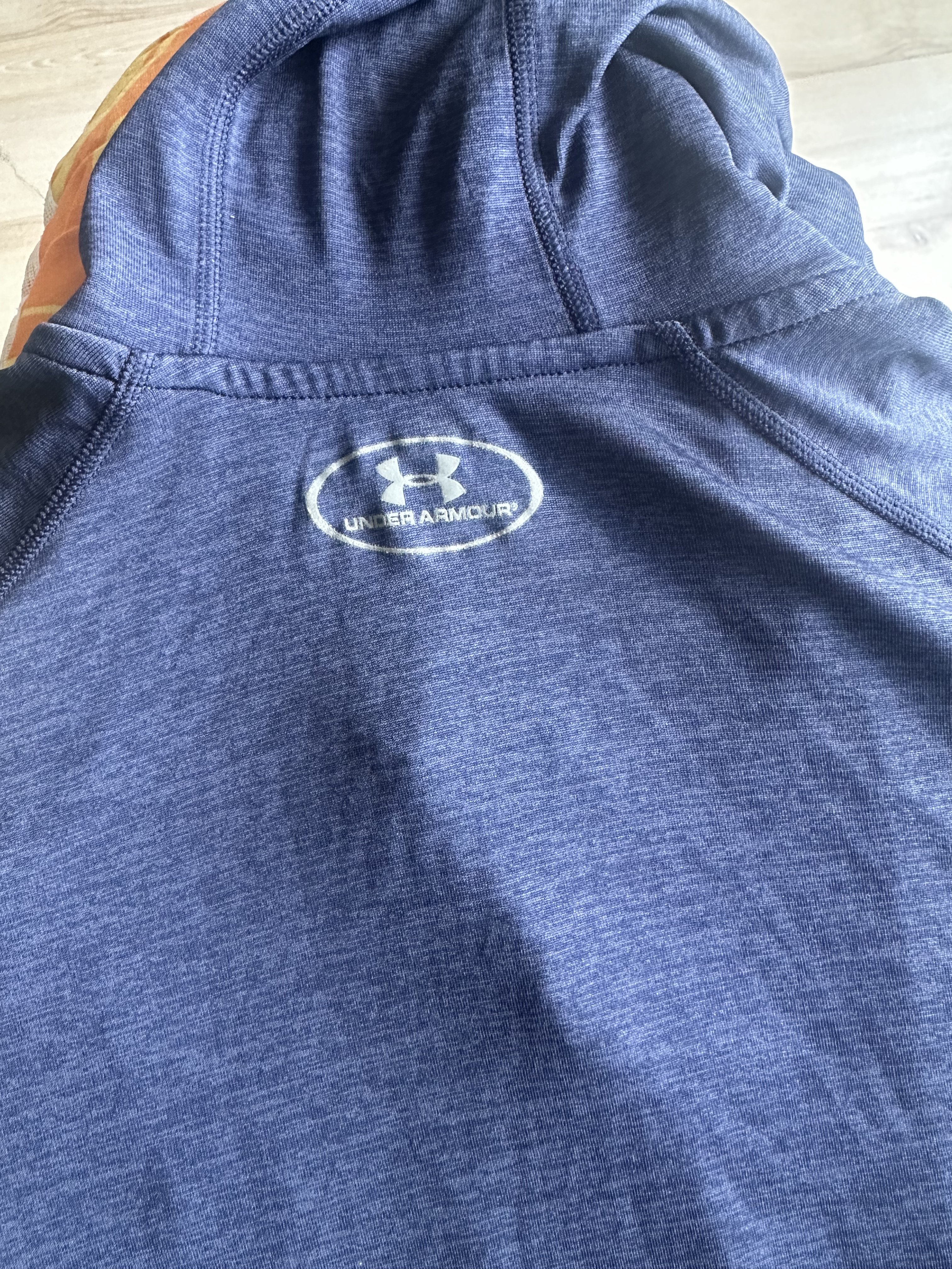 Доброго дня. Бірка стерлась нажаль, хоча носилась небагато. Розмір був Л . Під мишки 59 , рукав від шва де вже починається капюшон 80 , по спині 73 . В середині бірка відрізана бо кололась )