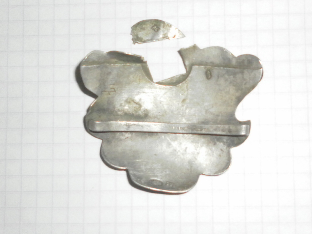 Добрий день! Підскажіть по предмету . Це кокарда чи щось інше ? 84 царська проба і клеймо ЯС та цифра 17 (вишкрябана ) - все це знаходиться на задній частині предмета .