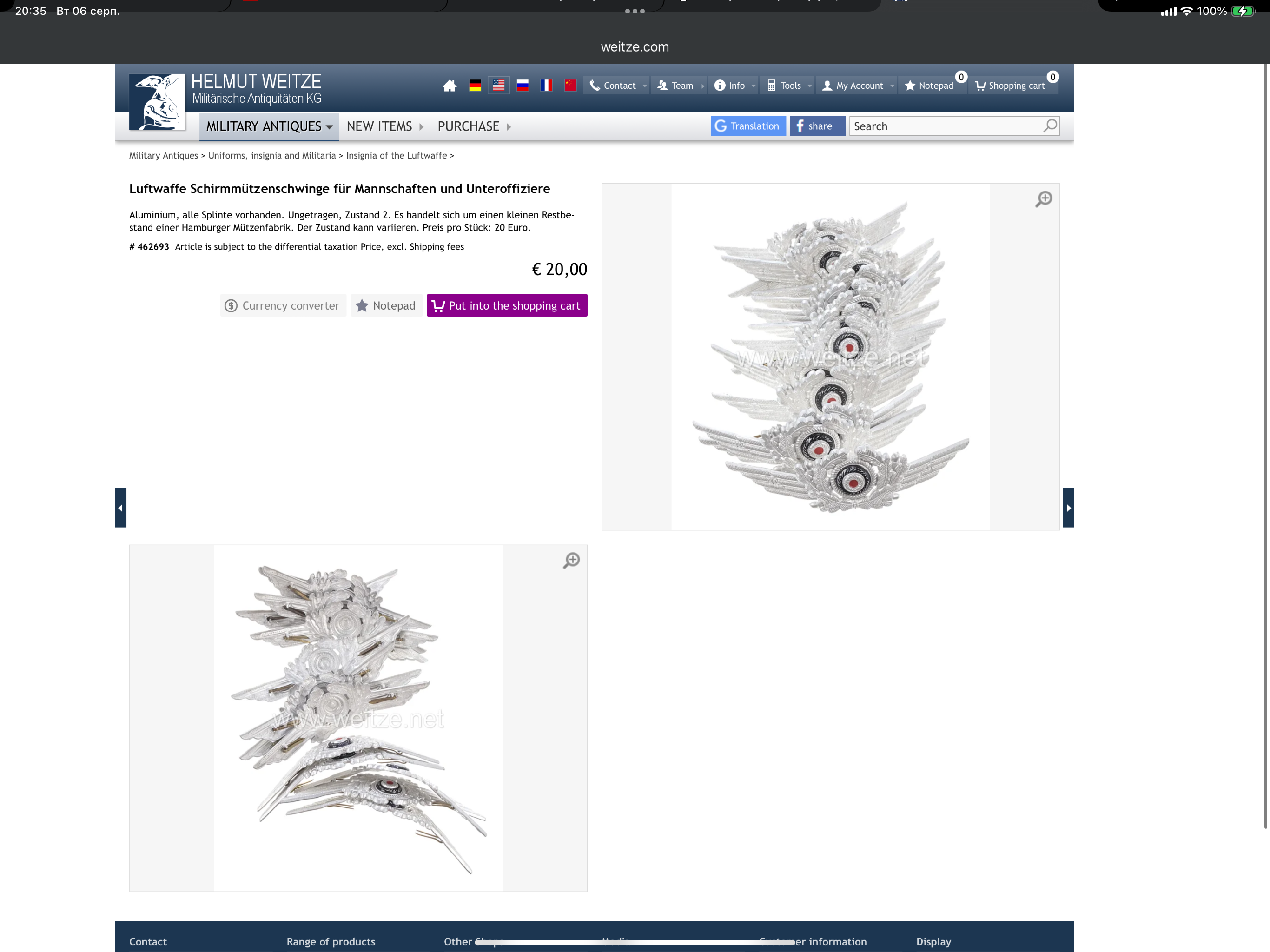 Приветствую уважаемые камрады.Прошу определить на оригинальность данную кокарду.Фото только такие.Продавец утверждает что оригинальная,но у меня есть сомнения из-за блеска и усов.Заранее спасибо за ответ.