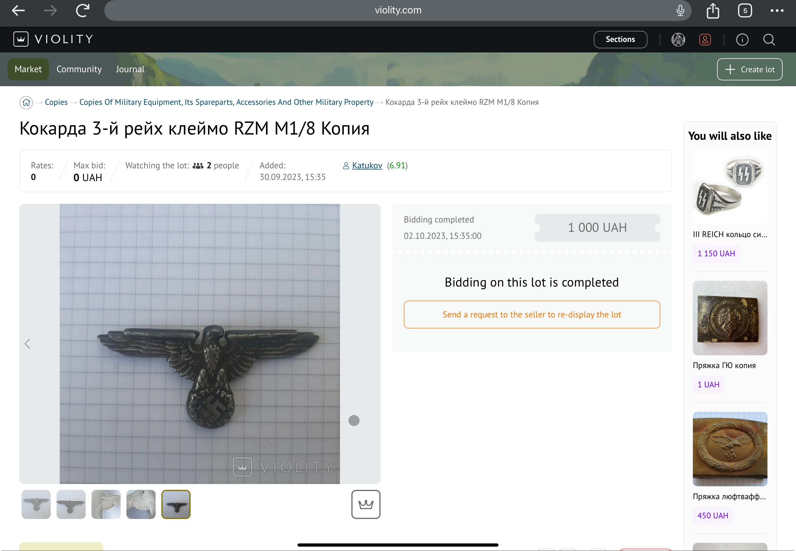 Приветствую. Год назад на «фиолетовом» аналогичную копию, но без уса, пытались продать за 1000 грн. Покупателей не нашлось.