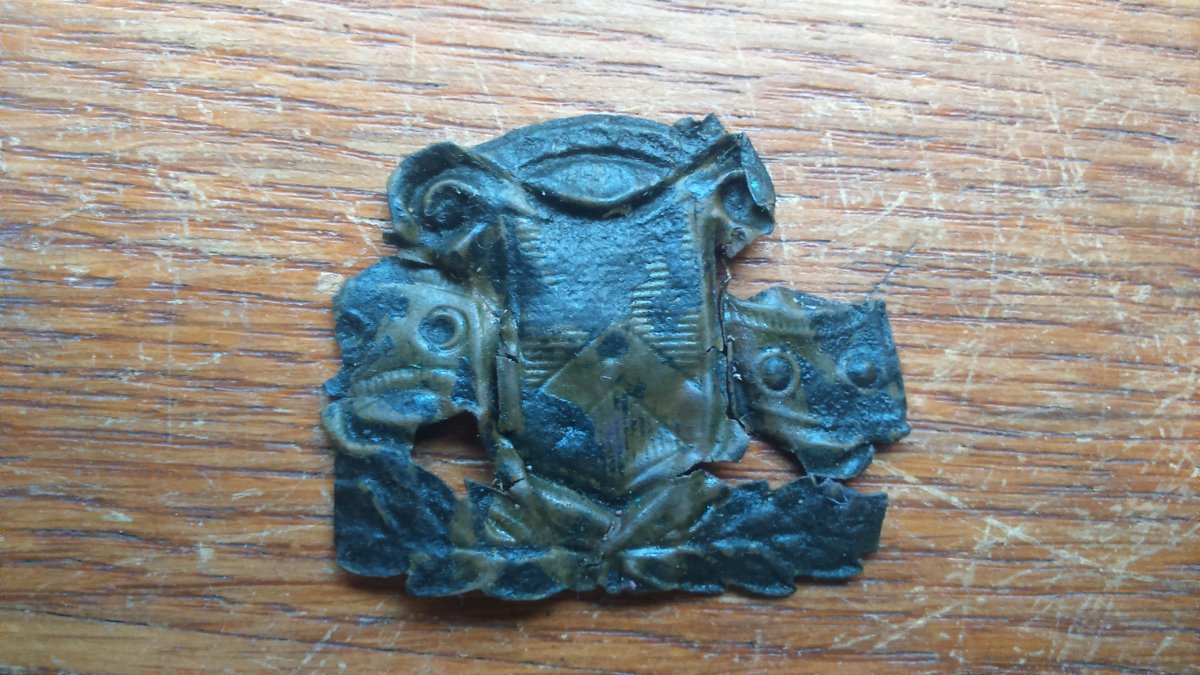 Вообще такой же обломок уже фигурировал как часть полицейской кокарды . Так что же это ?https://auction.violity.com/85576165-kokarda-policejskaya-zhandarmeriya