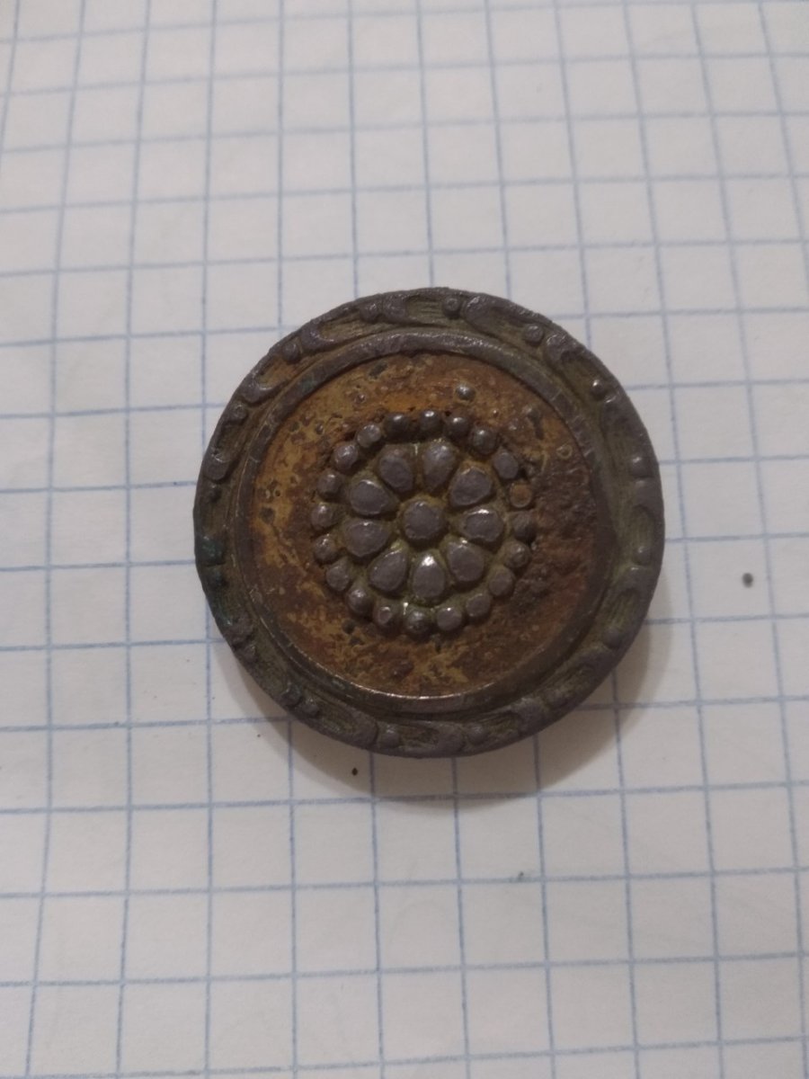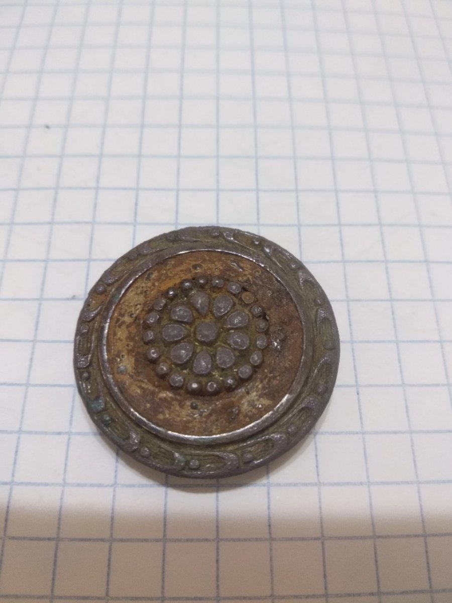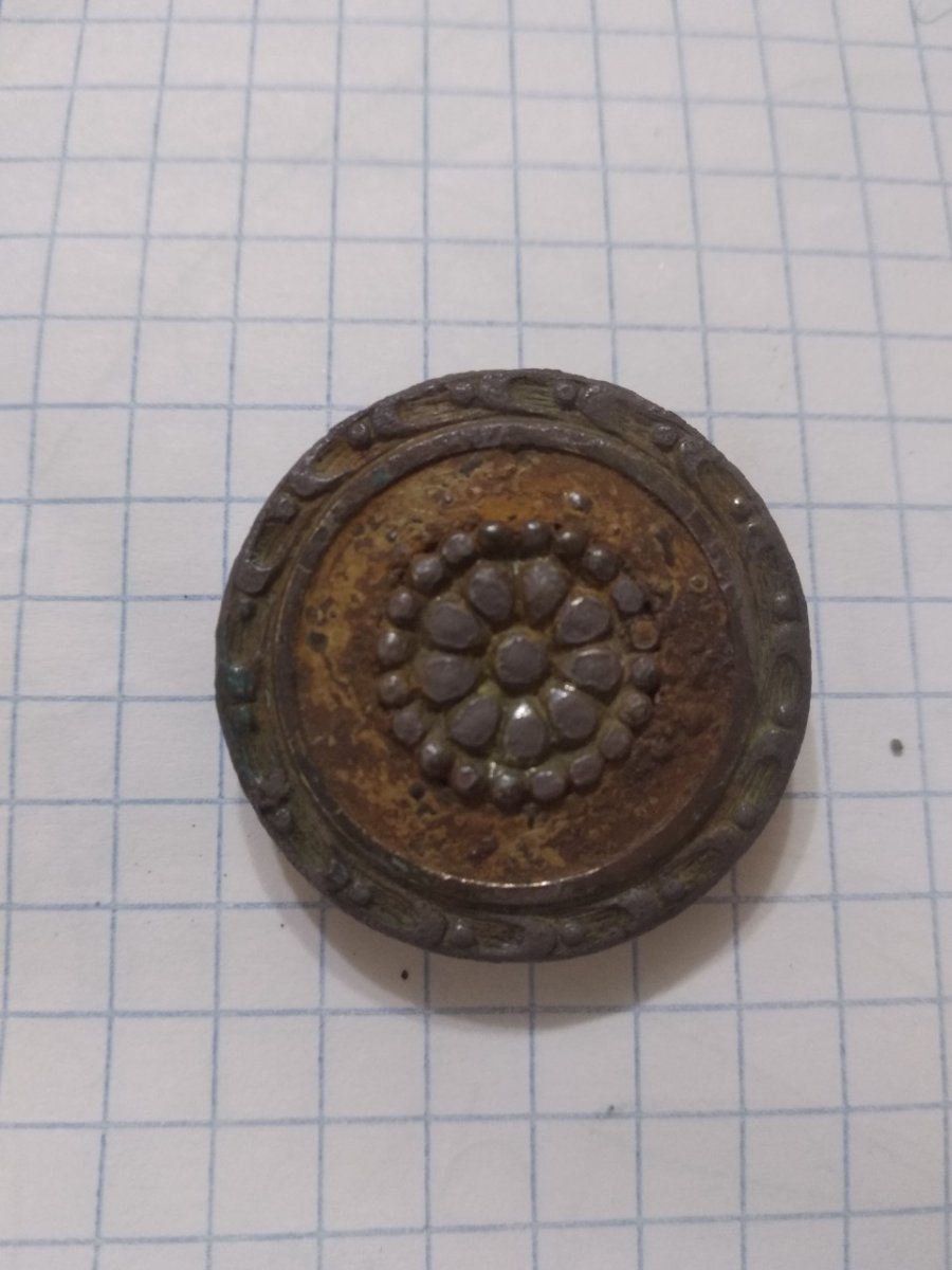По размерам схож с гусарским репейком: https://www.google.ru/search?tbm=isch&q=гусарский репеек#imgrc=_ Однако уж больно вычурный рисунок для гусарского сапога... http://southklad.ru/forum/viewtopic.php?f=455&t=11879&start=290 Может брошка дамская?.. Честь имею!