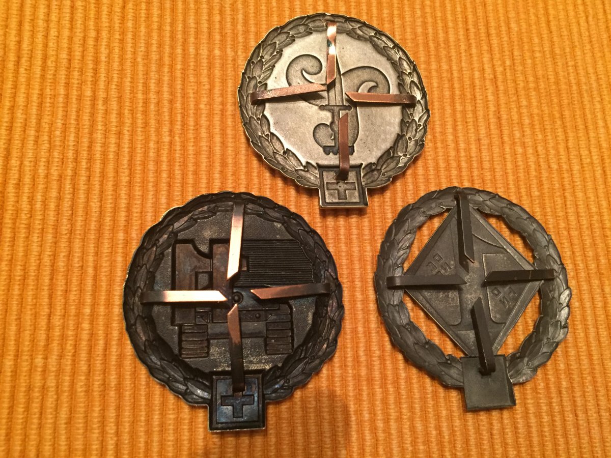 Далі, щодо самої кокарди: переважна більшість швейцарських кокард - легкі, з вигнутого металу, на чотирьох великих, завжди загострених вусиках кріплення, по бокам та зверху-знизу.