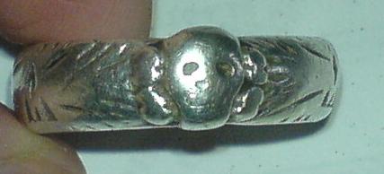 Посмотрите на предпоследнее фото,кольцо имеет неодинаковую ширину сужаясь к черепу,посмотрите последнюю фотку как ужасно и криво соединен сам череп..
