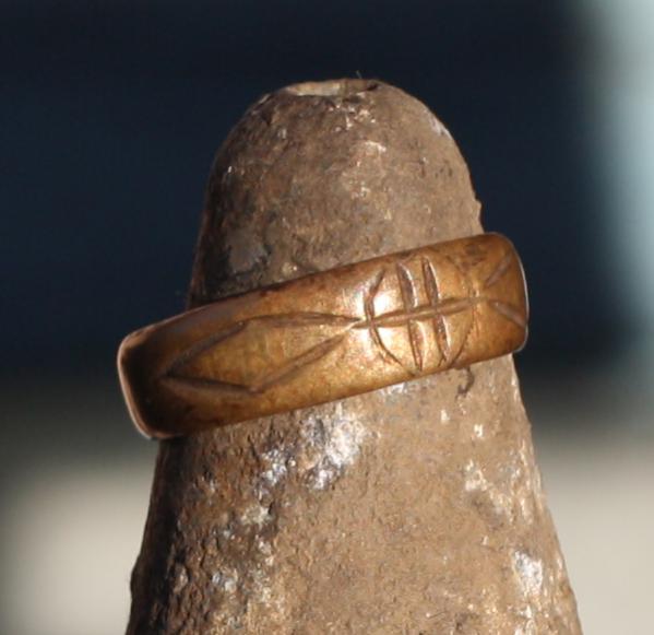нашлось такое колечко,на позициях,но там же были находки по старине,подскажите война или старина,и что может обозначать символ.материал медь,размер 20.