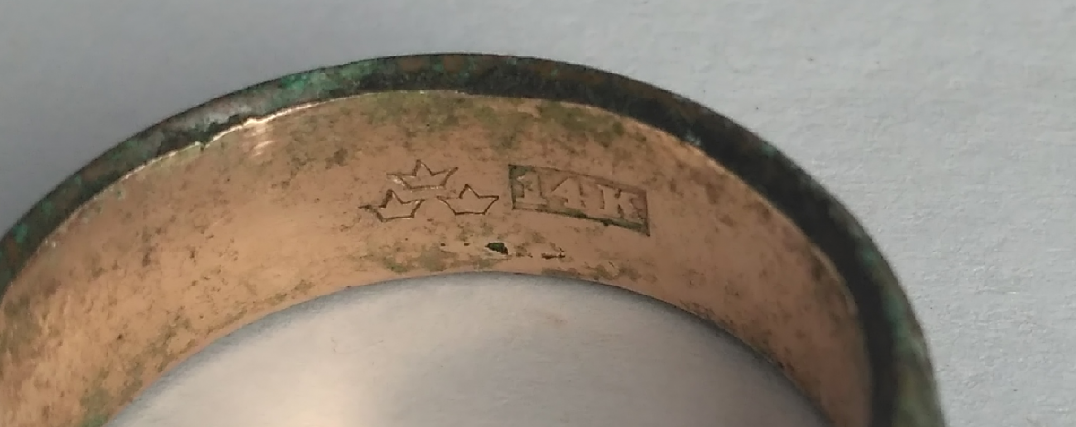 Пробирные клейма Швеции: «Три короны» на рифленом фоне в щитке, форма которого представляет собой символ трилистника, удостоверяет, что изделие выполнено из драгметалла, проба которого не ниже минимального стандарта, принятого в стране. еще «Три короны» на рифленом фоне в овале – клеймо для изделий из драгметаллов, импортируемых в Швецию; удостоверяет, что изделие выполнено из драгметалла, проба которого не ниже минимального стандарта, принятого в стране. http://www.silverroom.ru/base/index.php?country=se Так как больше о трех коронах в описании проб ничего нет , а у Вашего кольца нет ни щитков ни овалов - подозреваю , что это цыганское золото или зоновская работа .