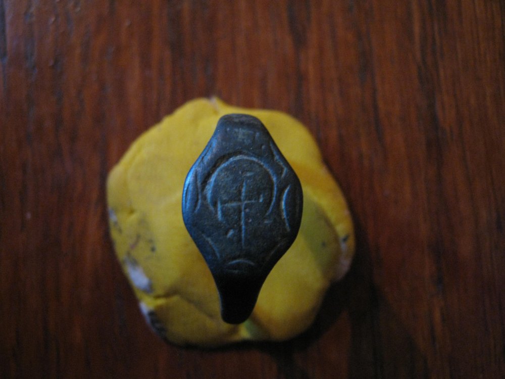 синхронные перстни, первая половина-середина 17 века первый - козаччина, региональная окологеральдика, схематизированное мелкорельефное трактование герба Тэнпа Подкова у Ющенко есть такой аналогичый, - но с картинкой на другом типе заготовки - с округлым щитком второй - по факту оправа, вставкой в котором было стекло/пластина слюды