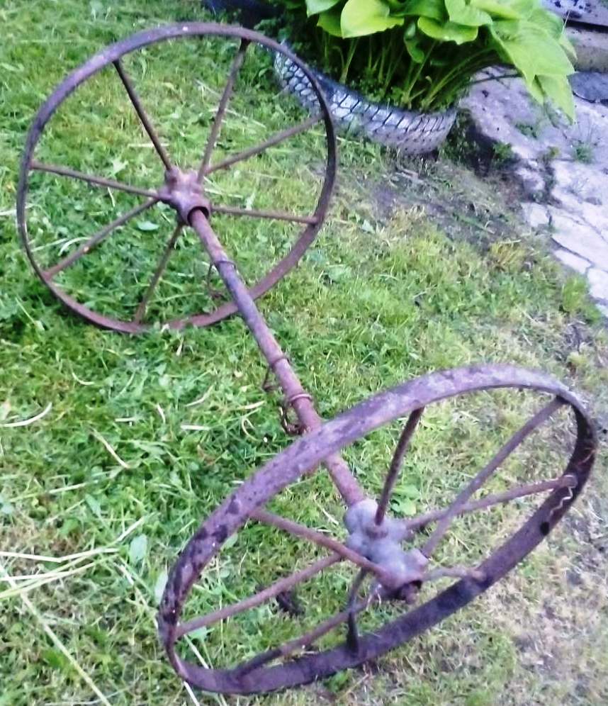 Взагалі, на фото кінний плуг, а з його коліс,робили що завгодно, хоч дитячі каруселі.