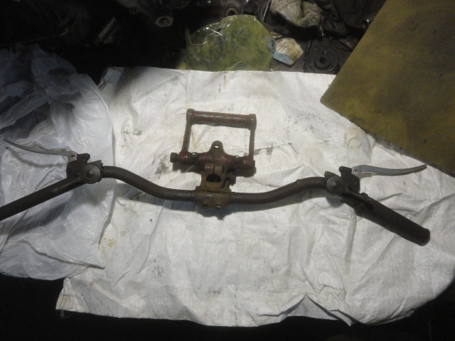 доброй ночи!. От какого мотоцикла может быть этот руль? на ручке газа и под монетками краска фельдграу, на траверсе родная краска вишневая, а крышечка крепления руля родная краска чорная. думаю, что с трех мотоциклов, но одной и той же модели. диаметр руля 22мм. по средине руля утолщение 24мм. похожий руль встречал на мотоцикле victoria, но не уверен, что с такого мотоцикла.