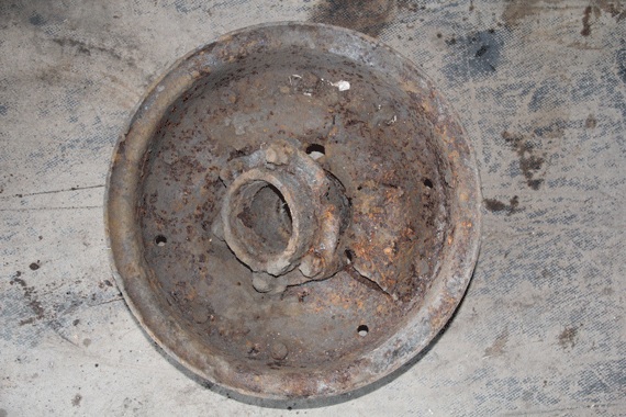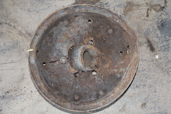 Колесо было найдено на арт позиции, поле примерно по периметру 2х2 км. В юго-западной части поля островок кустарника нашпигованный осколками, стабилизаторами от немецких 81 мм миномётных мин, что наводит на мысль о том что эта арт позиция РККА. Колесо со следами пулевых и осколочных пробоин и “с мясом” вырванной ступицей, найдено на глубине около метра. Что за сельхоз техника вошкалась под миномётным огнём???