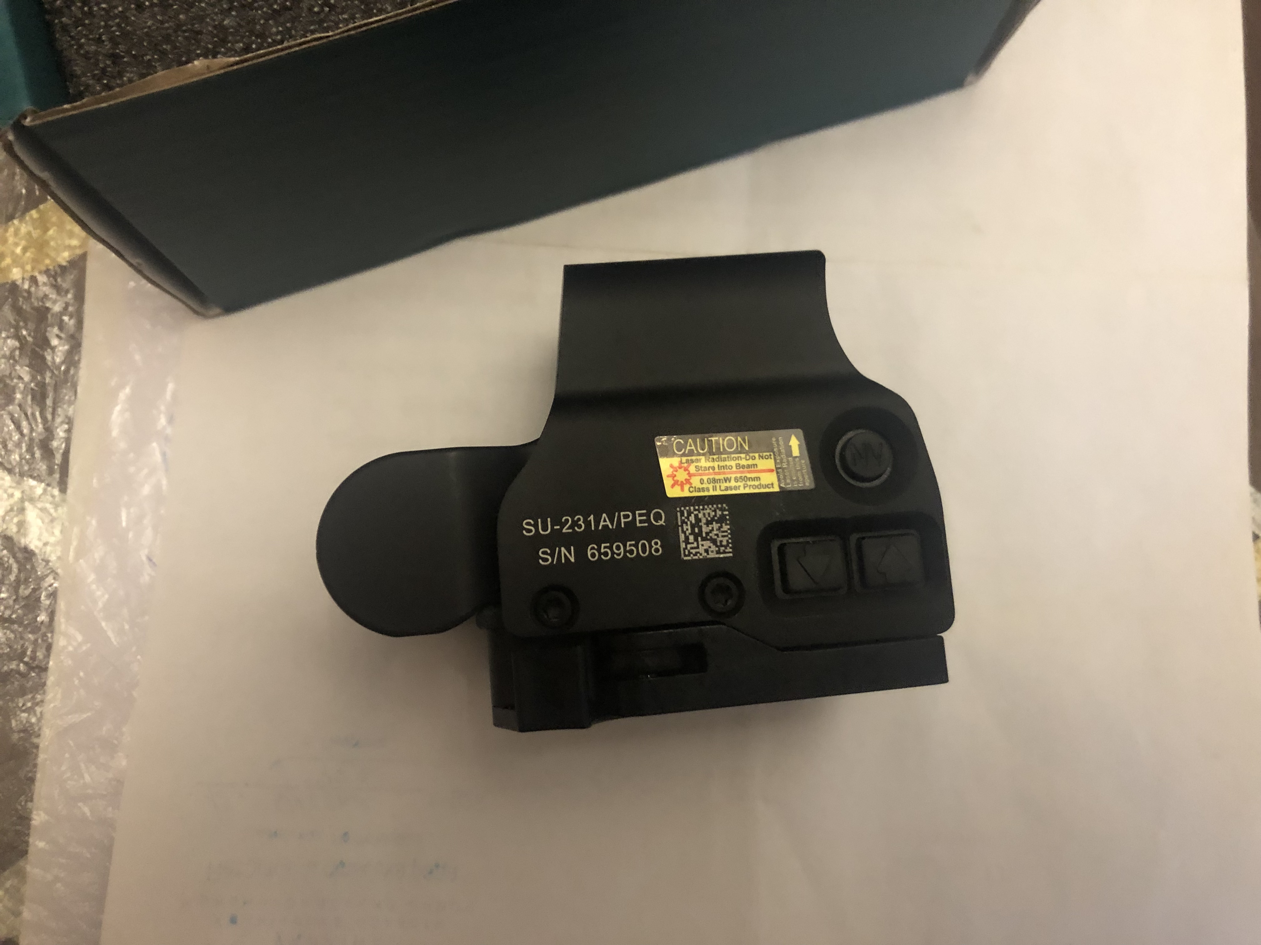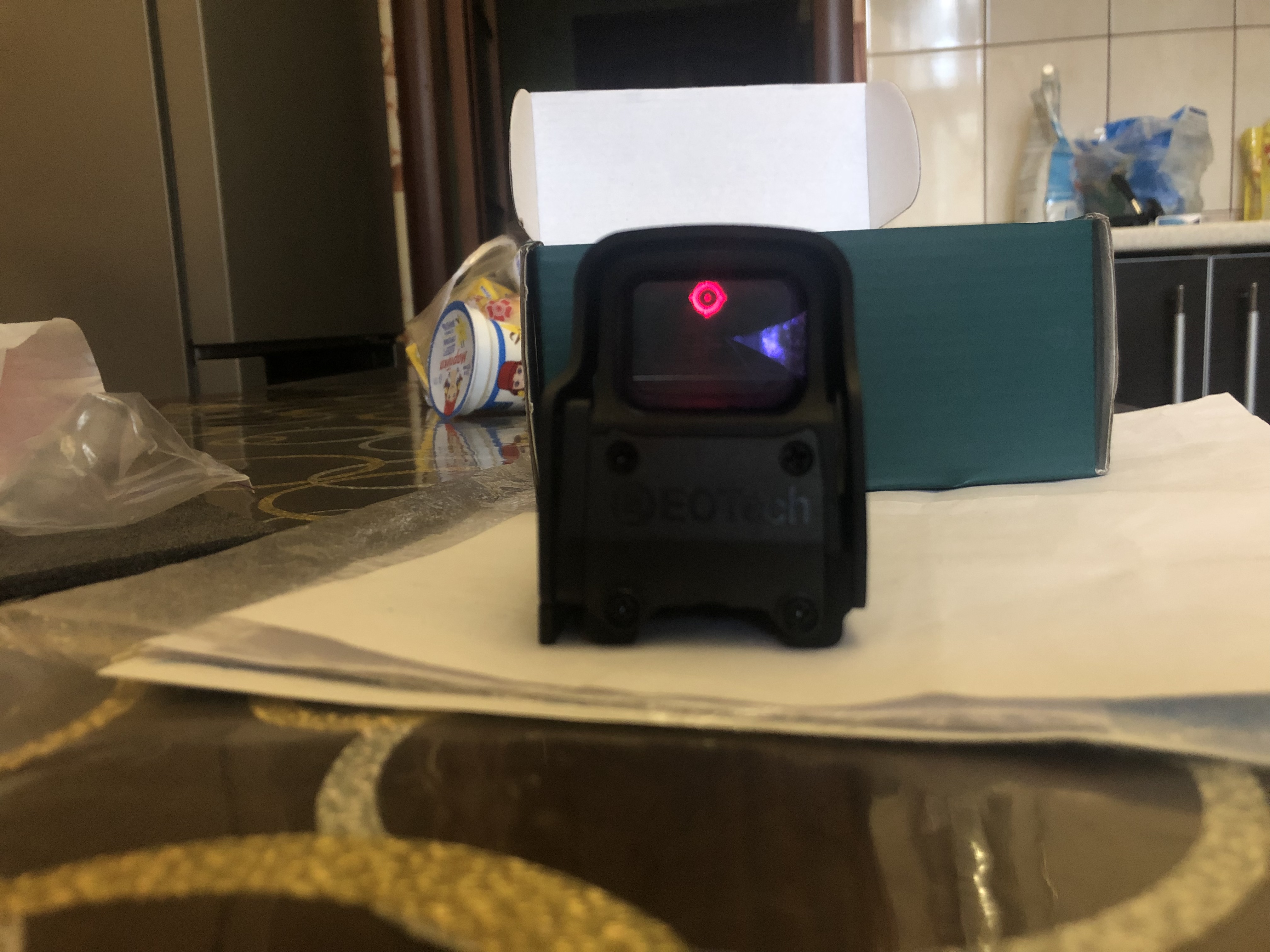 Чудова репліка eotech, прицільна марка червоного кольору, лінзи дуже світлі, в сонячну погоду добре видно марку, швидко зйомне кріплення. Приціл абсолютно новий. Виробник вказує що здатний тримати віддачу 550 джоулів, тоб то як мінімум повинний витримати 9х19, ставити на АК або АР не рекомендую. 3800грн. Торг.