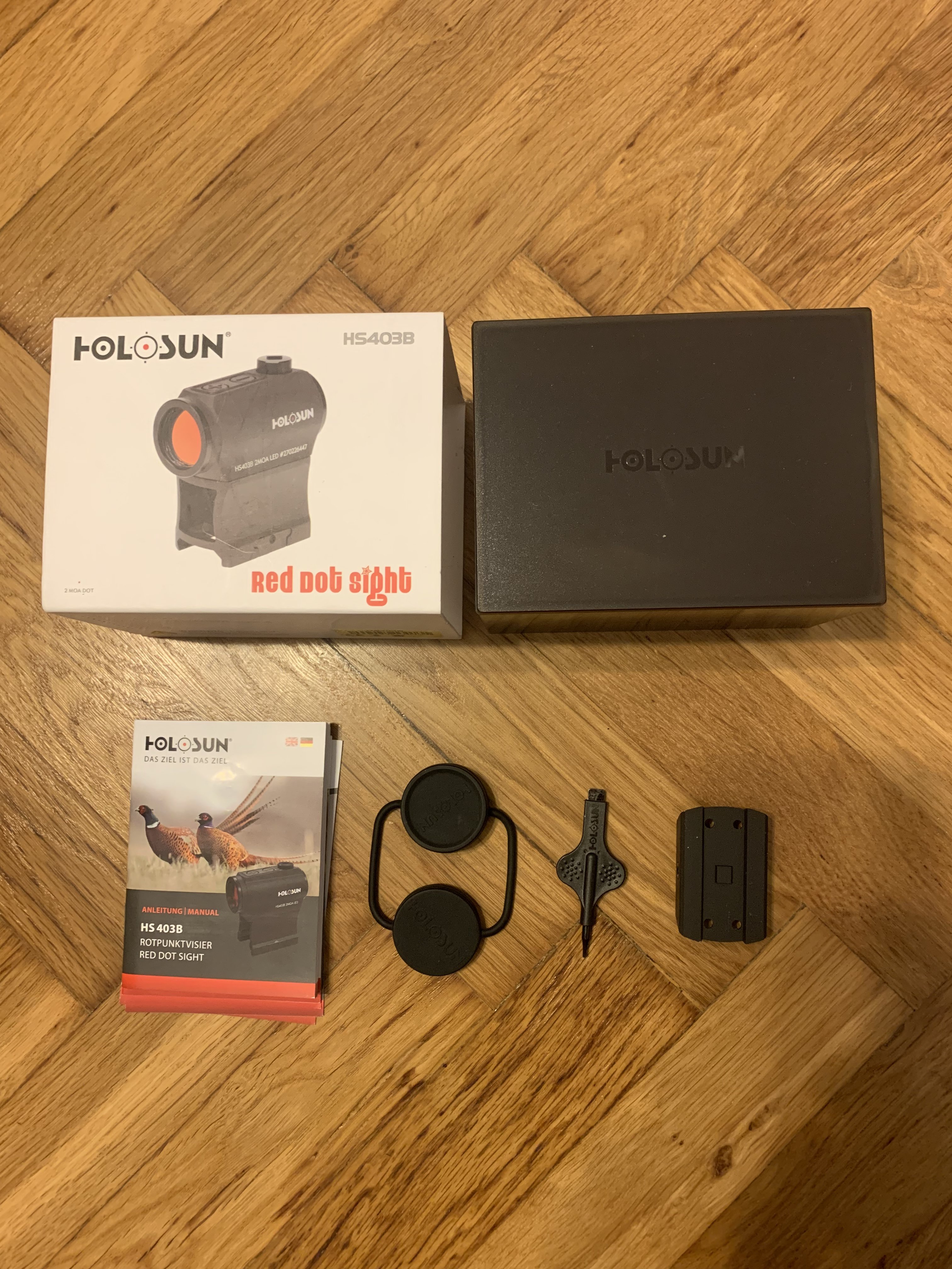 Holosun 403 B Легкій, зручний, якісний і витривалий коліматор Тип корпусу: закритий (трубчастий) Кріплення: Вівер/Пікатінні Розміри лінзи: 20 мм Ефект паралаксу: ні Колір прицільної сітки: червоний Габарити: Габарити прицілу (ДхВхШ): 65 х 69 х 40 мм (високе кріплення) Вага прицілу: 80 г Вага прицілу: 130 г (високе кріплення) Габарити упаковки (ДхВхШ): 123 х 92 х 80 мм Вага упаковки: 356 г Ціна: 200€ Контактні дані: о67-857-два-8-три-8 Під замовлення можу привезти інакшу оптику