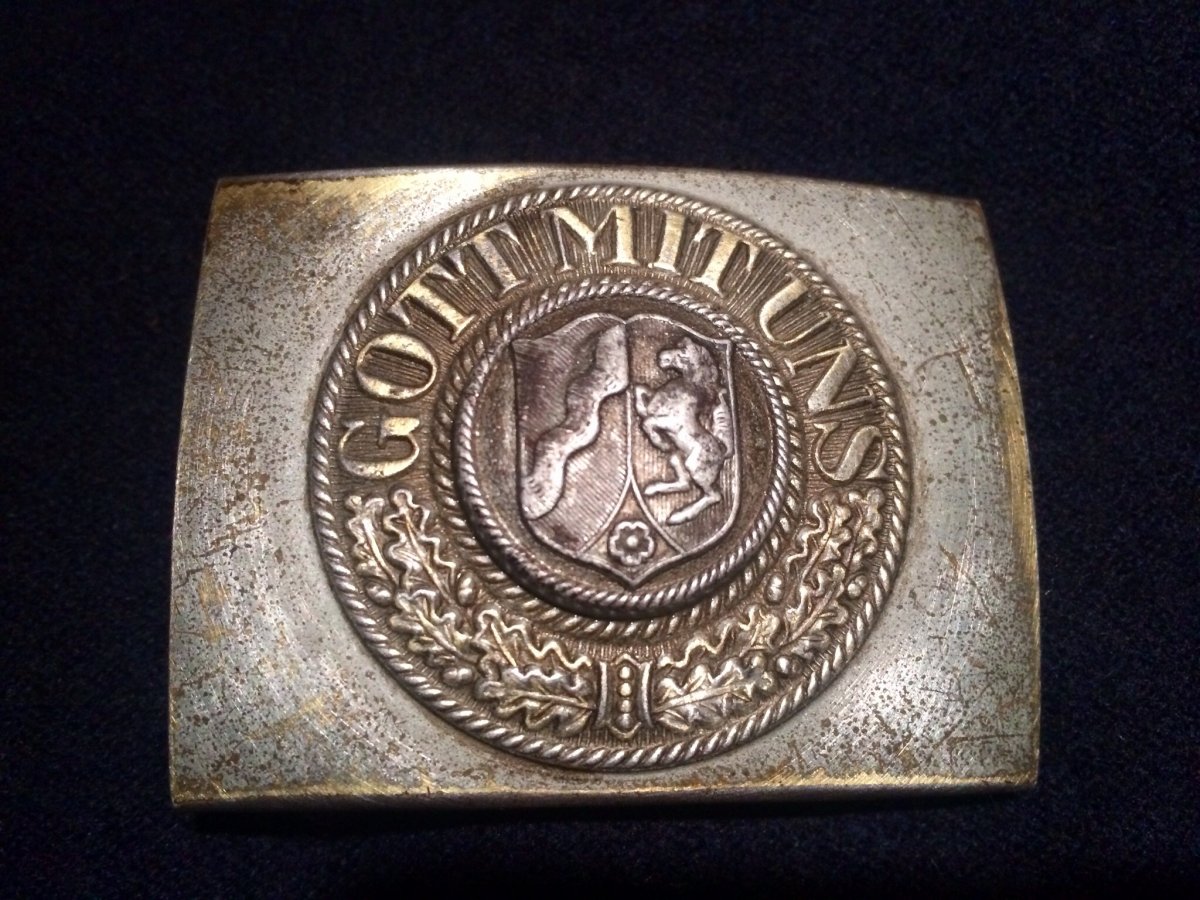 Вот приехала классная пряжуля. Полиция Германии Земля Северный Рейн-Вестфалия. Выполнена заводским способом из запасов пряг Рейха. Учреждена 5. Februar 1948, упразднена 10. März 1953 gesetzlich Служила всего 5 лет. Сохранены следы "позолоченного" покрытия.Спасибо Дан за пряжку.