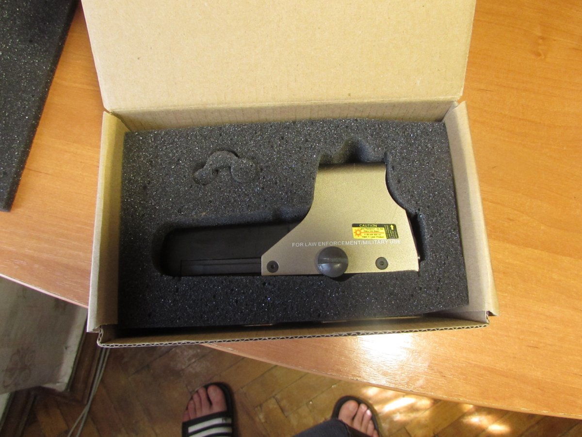 Состояние 5, использовался раз 5-7. Цена 600 грн. https://militarist.ua/catalog/airsoft/styling/pritsely/element-eotech-552-holosight-tan-new-version/ Еще один EOTech от Element 552 holosight (new version). Тип прицельной марки: Illuminated 5 M.O.A Red\Green-dot. Кратность: 1х Яркость: около 8 позиций Ширина проекционного окна: 30мм Высота проекционного окна: 23мм Длина: около 130мм Питается от двух батарей АА Интегрированное крепление на планку Пикатини