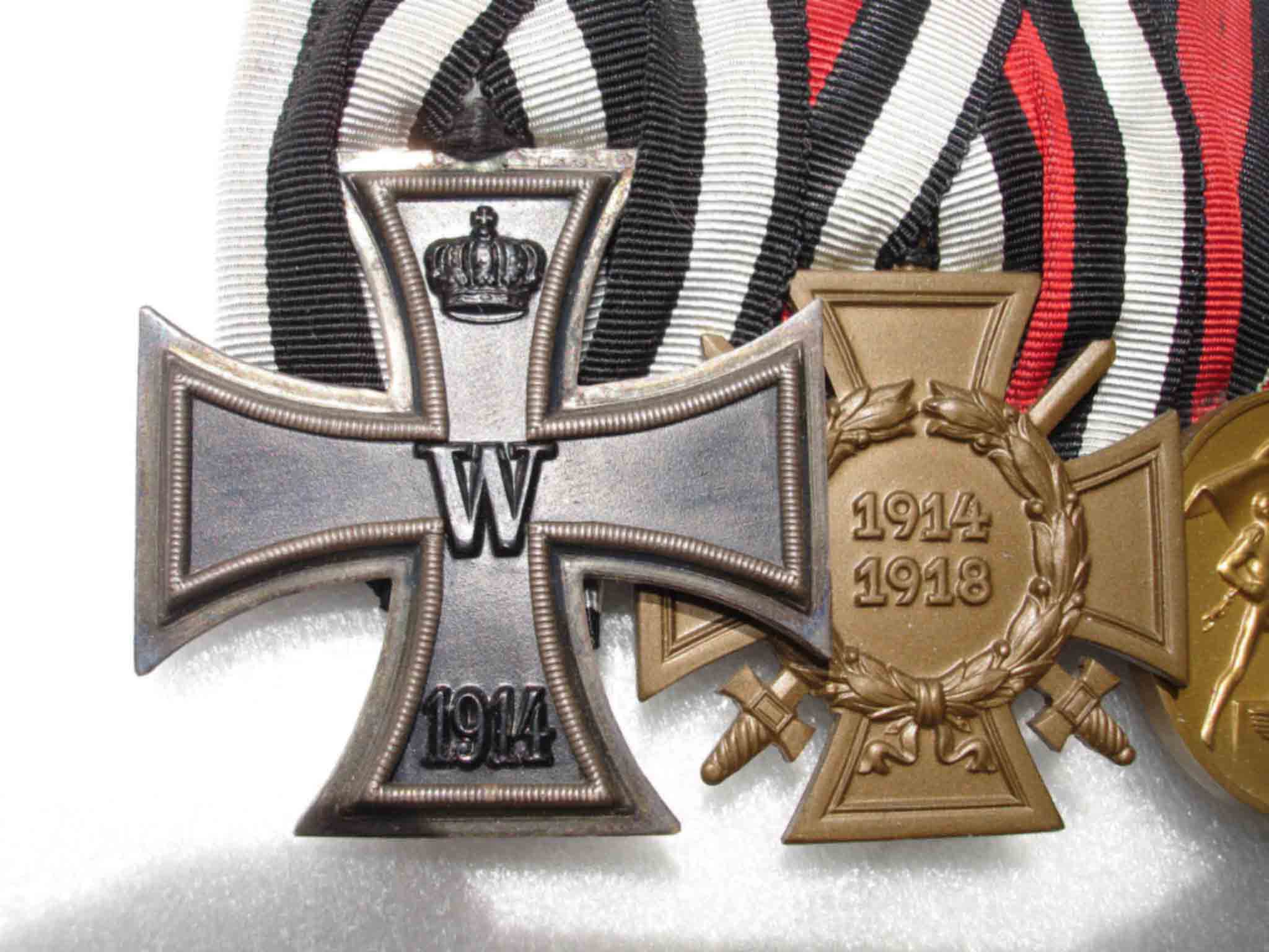 Колодка из 4 знаков, в отличном состоянии. Состоит из ЖК-2 за 1МВ, креста Гинденбурга, медали "Судеты", олимпийской медали. Медаль магнитная, не чищенная. Клеймо фирмы изготовителя колодки Gebr.Godet&Co - 250€ с доставкой.