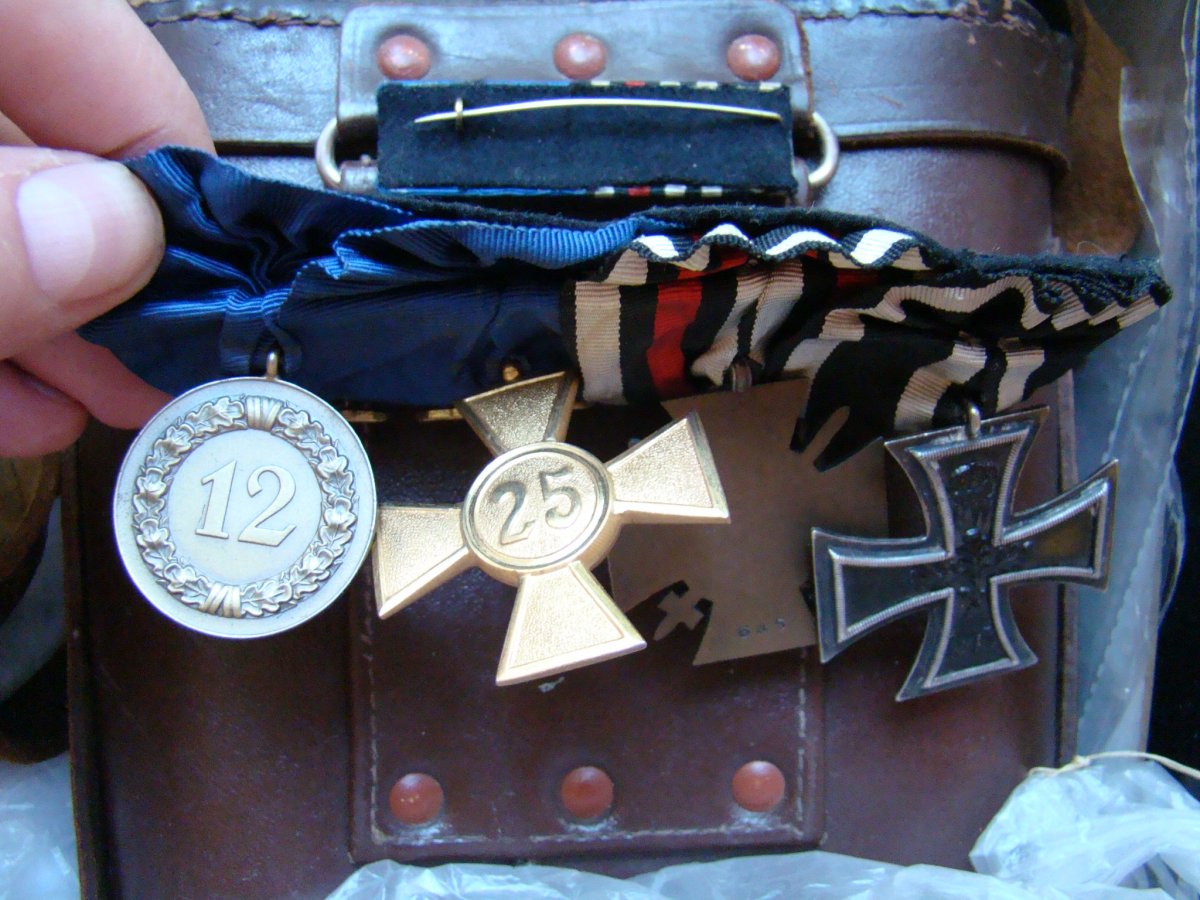Если принять что все натура, то я насчитал 380$ Но есть два вопроса. Ценность колодки определяет крест 25 лет, магнитный? вроде нет. Пятно странного цвета, как если он из цветного металла. Здесь нужны фото дополнительные. И медаль 12лет меня напрягает, патина неестественного оттенка. Надо более подробные фото. Ну и для полноты картины проверьте магнитом Крест 25, медаль 12, и обоих лрлов над ними. Если крепко липнет сталь, если нет то цветмет