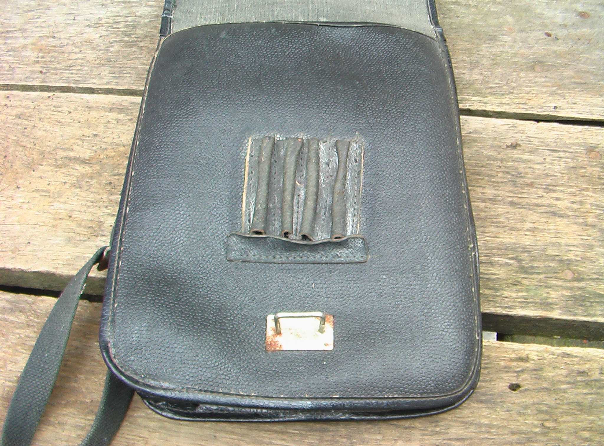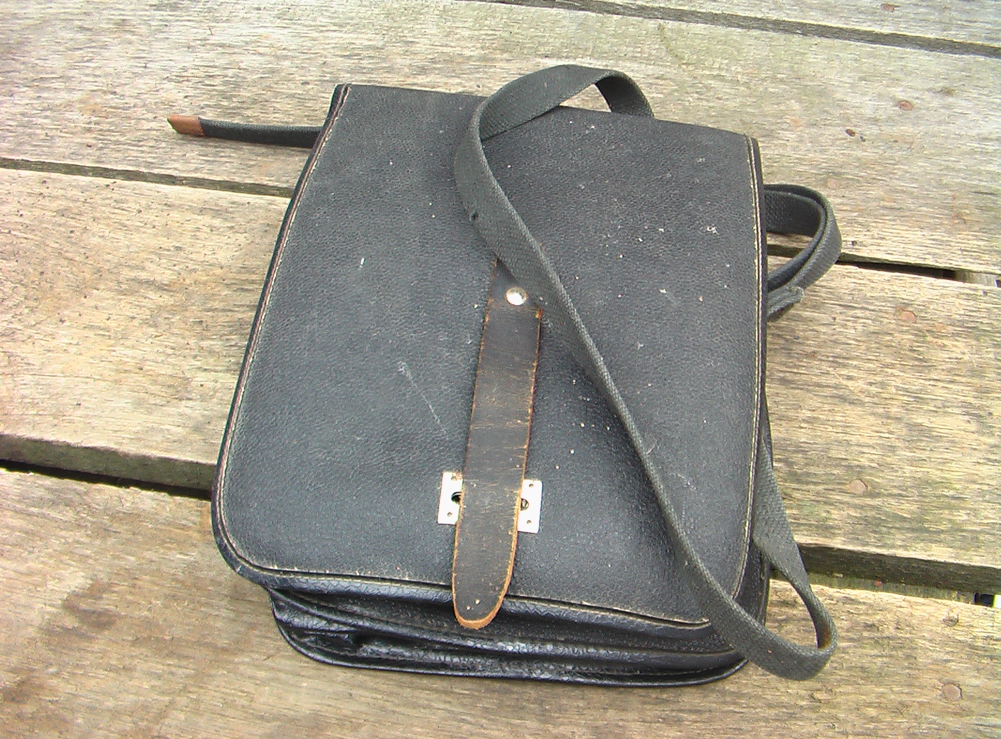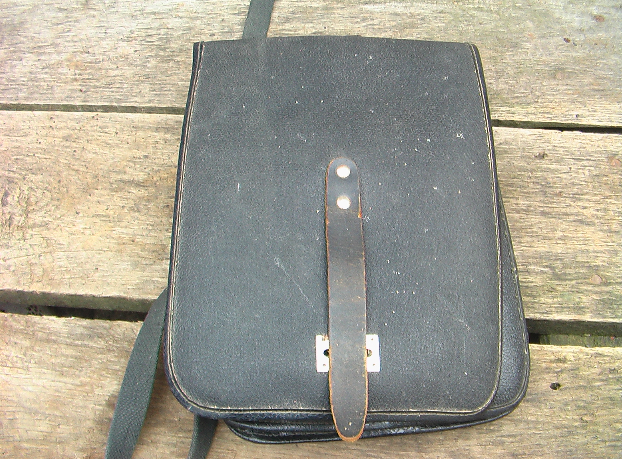 ...польова сумка агронома... пізній совок, кірза. ИМХО (у мене така була, у 2-му класі...) З.ЬІ. ...на звороті клапана мав БИ бути "штємпєль" ?