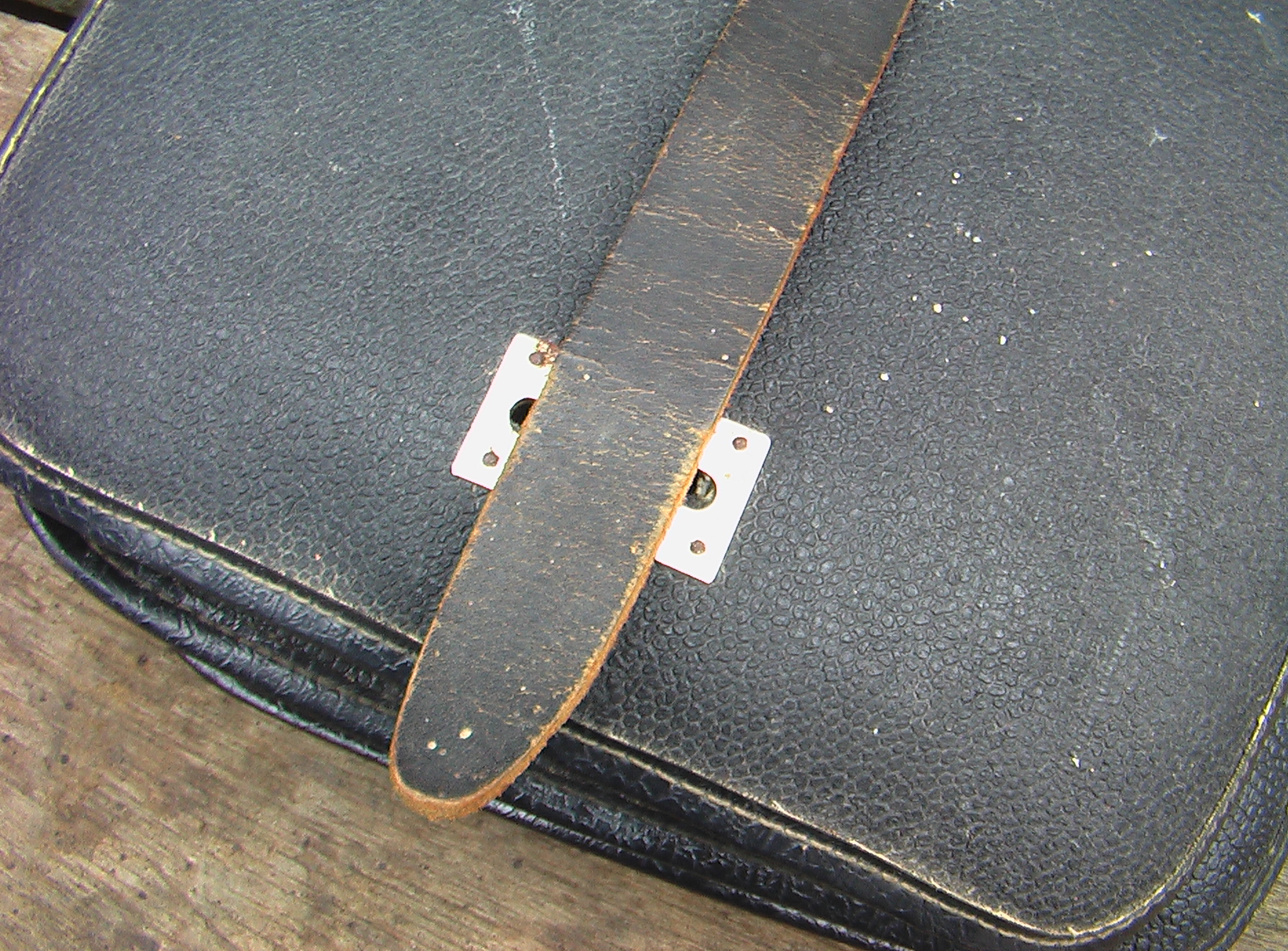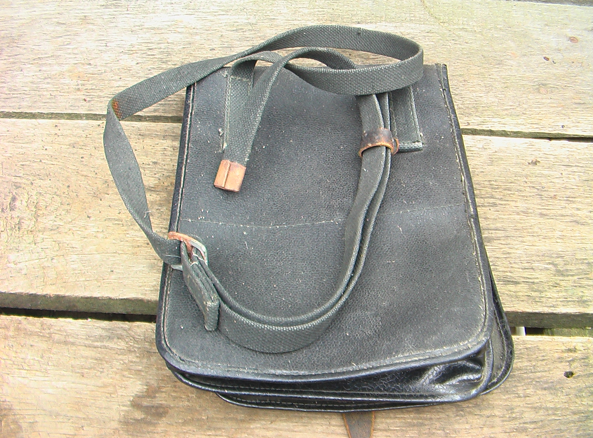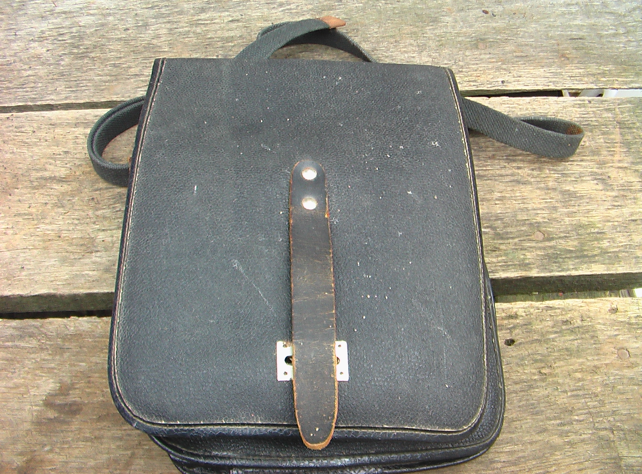 ...польова сумка агронома... пізній совок, кірза. ИМХО (у мене така була, у 2-му класі...) З.ЬІ. ...на звороті клапана мав БИ бути "штємпєль" ?