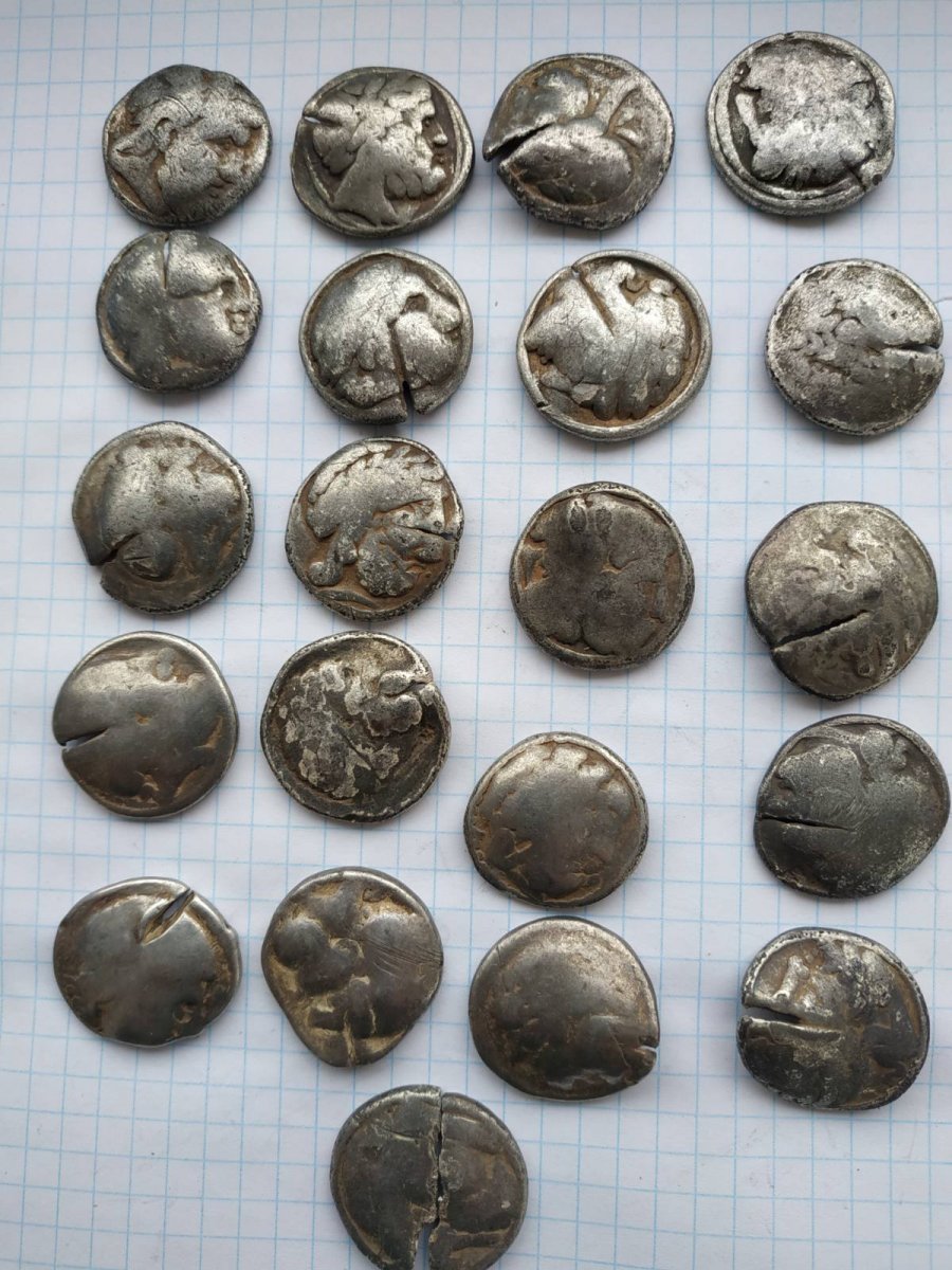 Комплекс з 17 тетрадрахм на оцінку .Орієнтовний час виготовлення приблизно 300 років до нашої ери. Цікавить комплексна оцінка, а не ціна по проходам на сусідніх форумах.