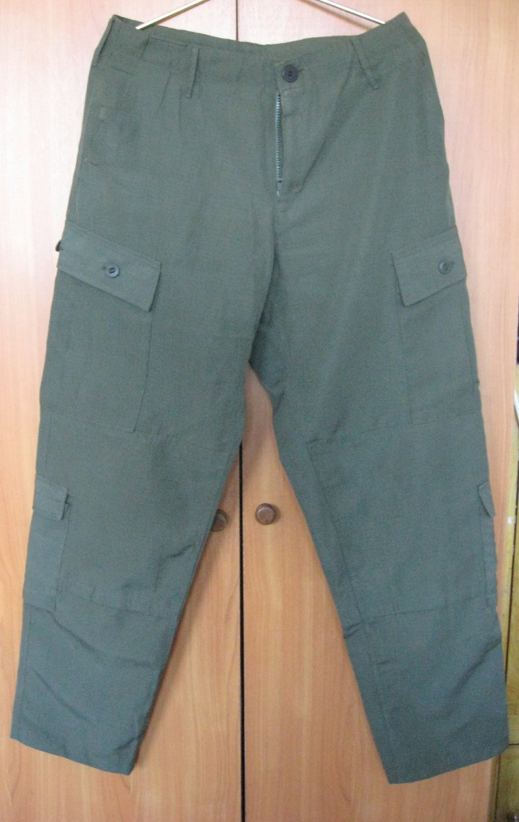 Комплект формы в покрое ACU. Размер - 50, на среднее телосложение и рост 170-175 см. Производитель неизвестный (бирки отсутствовали с момента приобретения новой вещи), но качество пошива очень хорошее. Цвет - зелёный (пытался передать на фото, не вышло). Ткань синтетическая с рип-стопом. Но летом не жаркая и не потеешь в ней. Эксплуатировалась летом пару месяцев и дальше в кабинетном варианте ещё пару месяцев. Есть лёгкие потертости материала, заметные только при тщательном осмотре. Из недостатков - выгорела липучка на рукавах. Изначально нагрудные карманы на кителе и накладные карманы брюк закрывались на липучки - переделаны под пуговицы (оригинальные с британской формы). Китель имеет два нагрудных кармана, по одному карману на плечах. На левом рукаве имеется карман для пишущих принадлежностей. Также на рукавах в районе предплечий имеются карманы для демпферирующих вставок. Также имеются липучки для знаков различия Брюки имеют два врезных кармана, два накладных на бедрах, два кармана на заднице и два кармана на голенях. Также в районе коленей имеются карманы для демпферирующих вставок. Цена - 500 грн бонусом пойдёт кепка с патчем. на кепке есть три велкро-панели. производитель - мил-тек