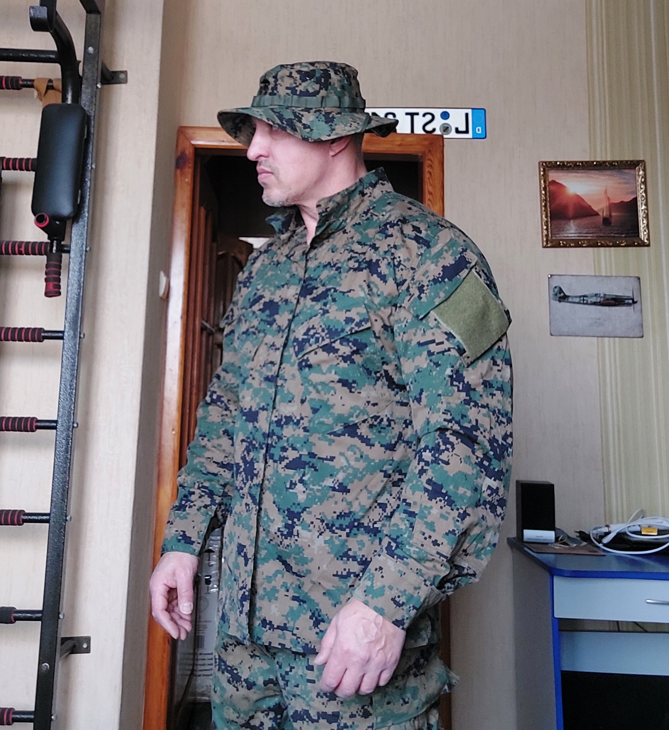 Вітаю. От такий комплект... 1. Кітель оригінал в стані новый, тільки велкро під нашивки добавив. Розмір МR 2. Штани від Helikon, трохи укорочені (під берці). Стан на 5- розмір MR - 3. Панама від Helikon, стан на 5 Розмір на наший 57-58 (в мене 59, я натягую) За все прошу - 2000грн П.С Є багато різних речей морпата, куртка Gen3, шорти МR, беці, кобура, підсумки, розгрузка і т.д, Якщо кому цікаво, пишіть в личку.