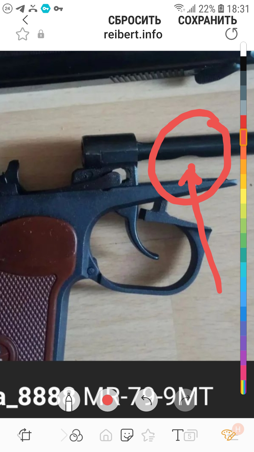 Парни,какой нафиг травмат,что он пишет..?:D Гляньте на окно выброса и зуб выброса,на саморез закрученный в ”окно выброса" и на надпись на рамке под большим пальцем..:D 5A3861A7-A7BF-4913-8CAB-523396BB8CBC.jpeg