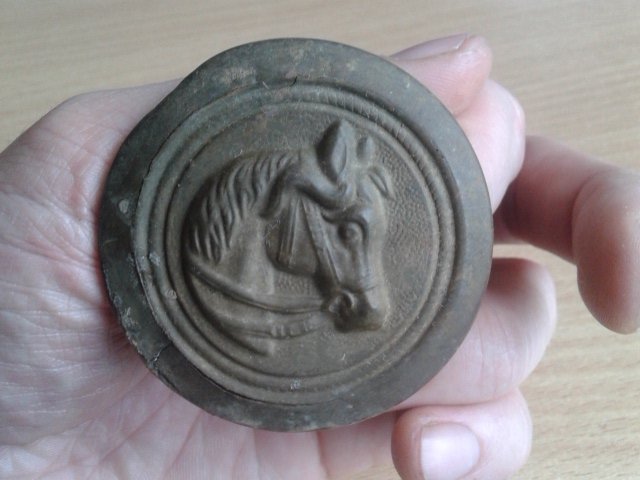 Попалась такая вещица.То, что конина- к бабке не ходи.Немецко - финский позицион. Может кто подскажет чья она, от какой детали упряжи и насколько редкая.Клейм не нашёл- обратка не ахти,похоже на оцинковку, 5,5см в диаметре.Спасибо