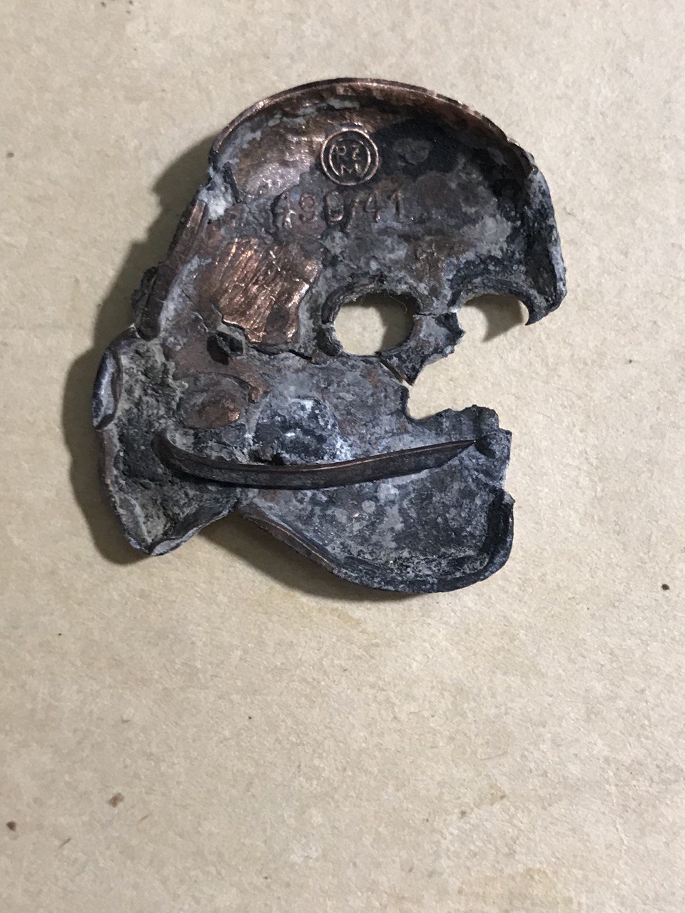 Всем доброго времени суток, камрады! Есть такой черепок, материал - медь покрытая алюминием. Состояние вы видите, страшно в руках держать чтобы не погнуть. Посоветуйте как законсервировать/ дочистить?