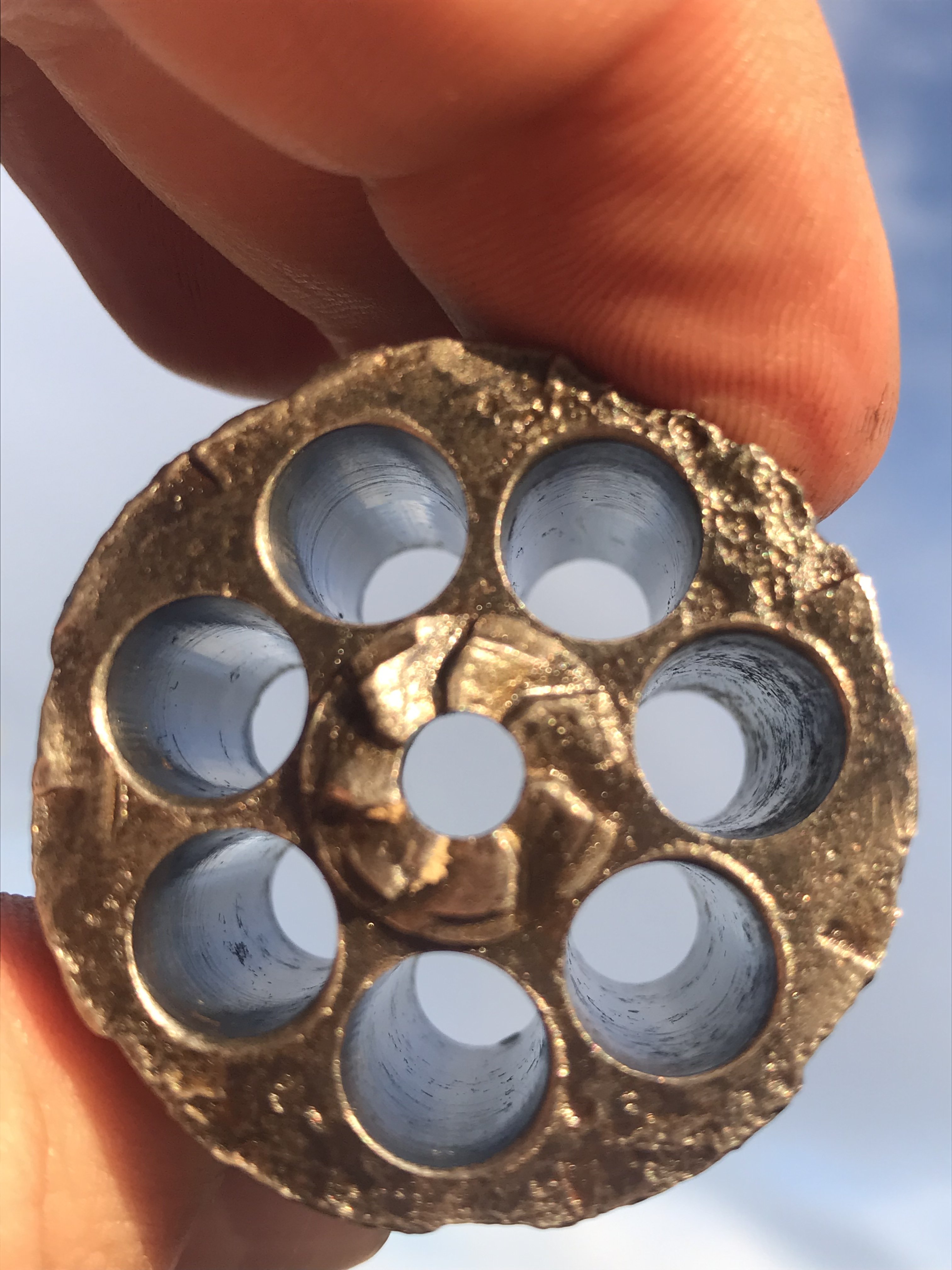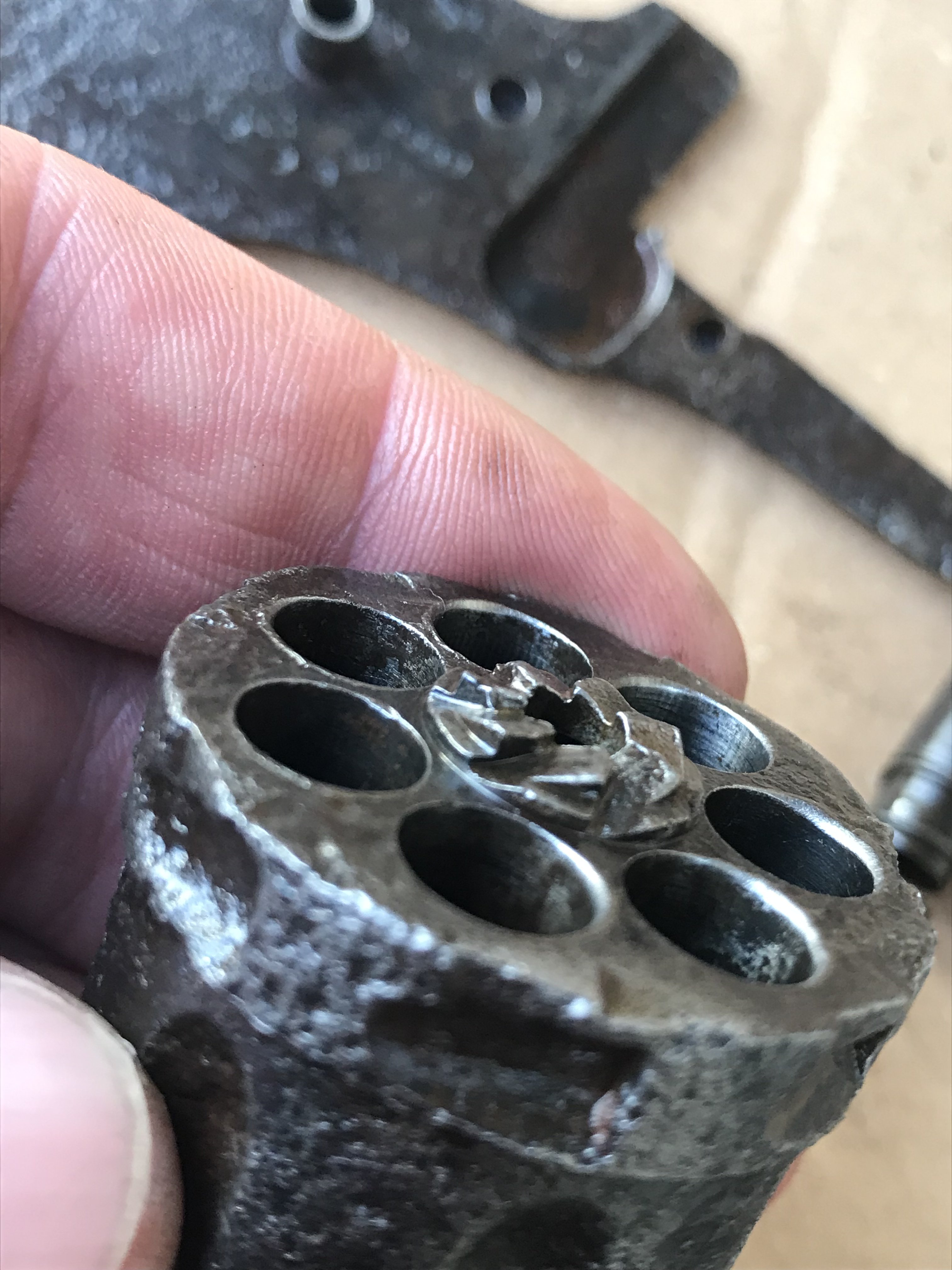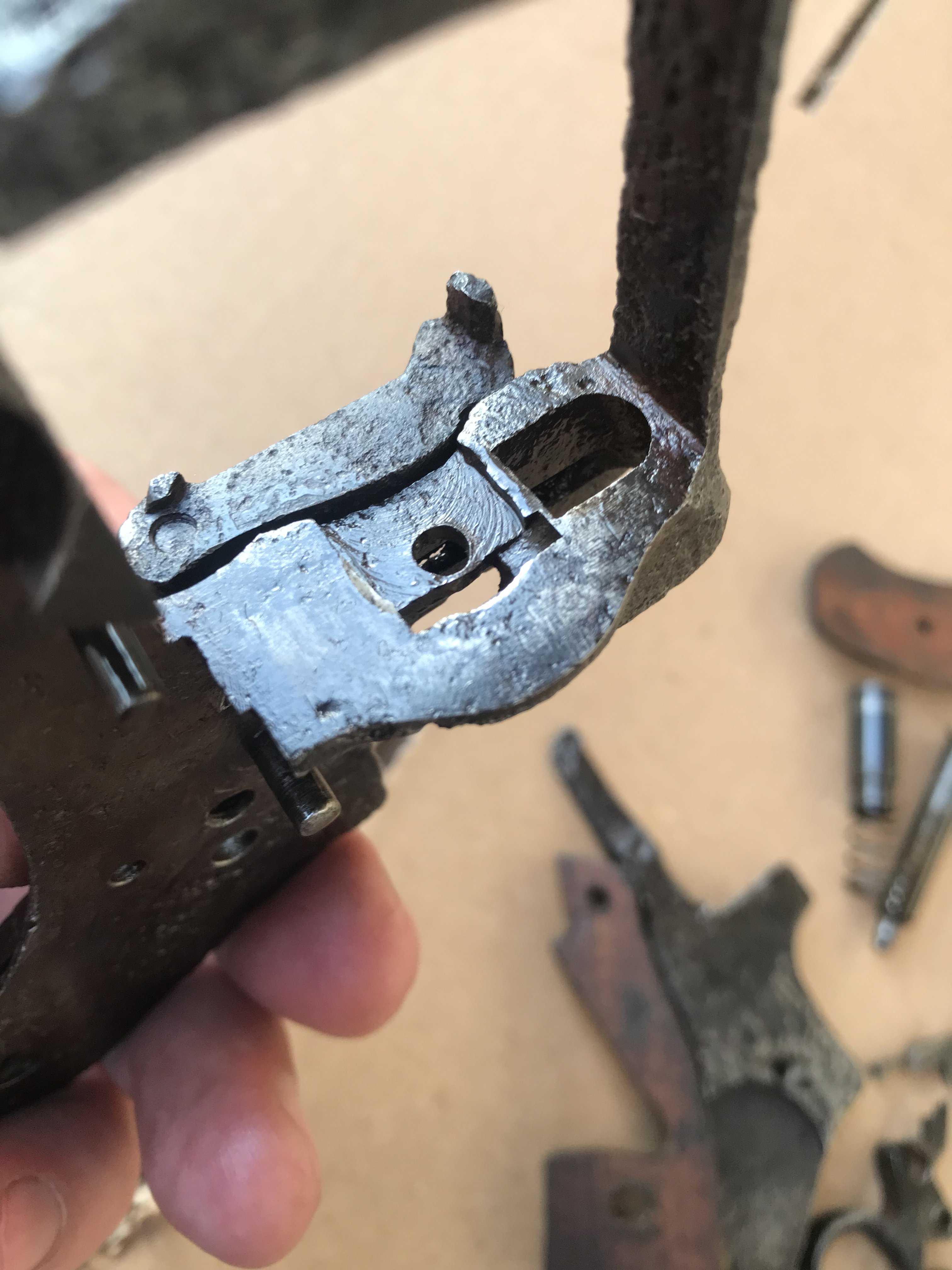 Доброго дня,прошу оцінити такі запчастини,достався по обміну зі слів власника коп.був знайдений у залишках метеріалу похожих на войлочний валянок,розбирав вже я,в коморах барабану були присутні залишки салідолу та 1 патрік,сама дудка була без салідолу відкрутилася легко, буде в середину залитий свинець.деревяні накладки вже куплені мною.