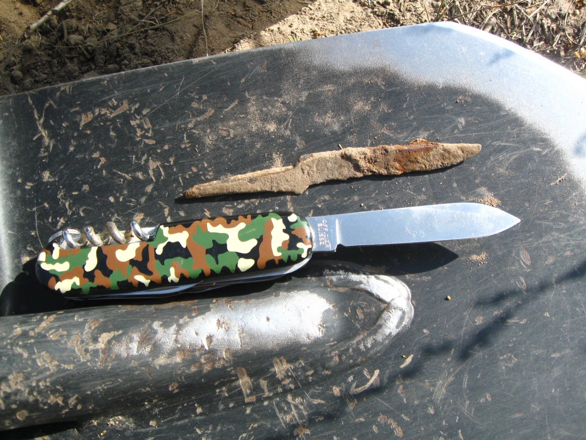 Вполне может быть. У Вас поприкольней по ЧК, чем у нас. Будем осваиваться Спасибо. А кое-где мои темы были не в тему Класс! Хотелось бы фото побольше и покачественнее. Любая находка старше 600-800 лет такое вполне заслуживает... ______________________________________________________________________ Есть ли находки у нас под Киевом? Ответ на это вопрос уже в который раз терзает наши умы. Вело-коп в Киевской области в воскресенье 15.09.19 года был очередной попыткой прояснить эту дилемму: Вело-коп в четверг 19.09.19 (во дата прикольная!): В последние годы чёрный металл не собираю, не вставляет уже никакой Онли цвет! Отдаю феррум подельнику-рукодельнику, он его доводит до тямы: Интересно, а Викторинокс бы сохранился за 800 лет в земле?... Находки в наших огородах: Пока что всё. До новых встреч!!! Умчался спать, завтра НА КОП!!!
