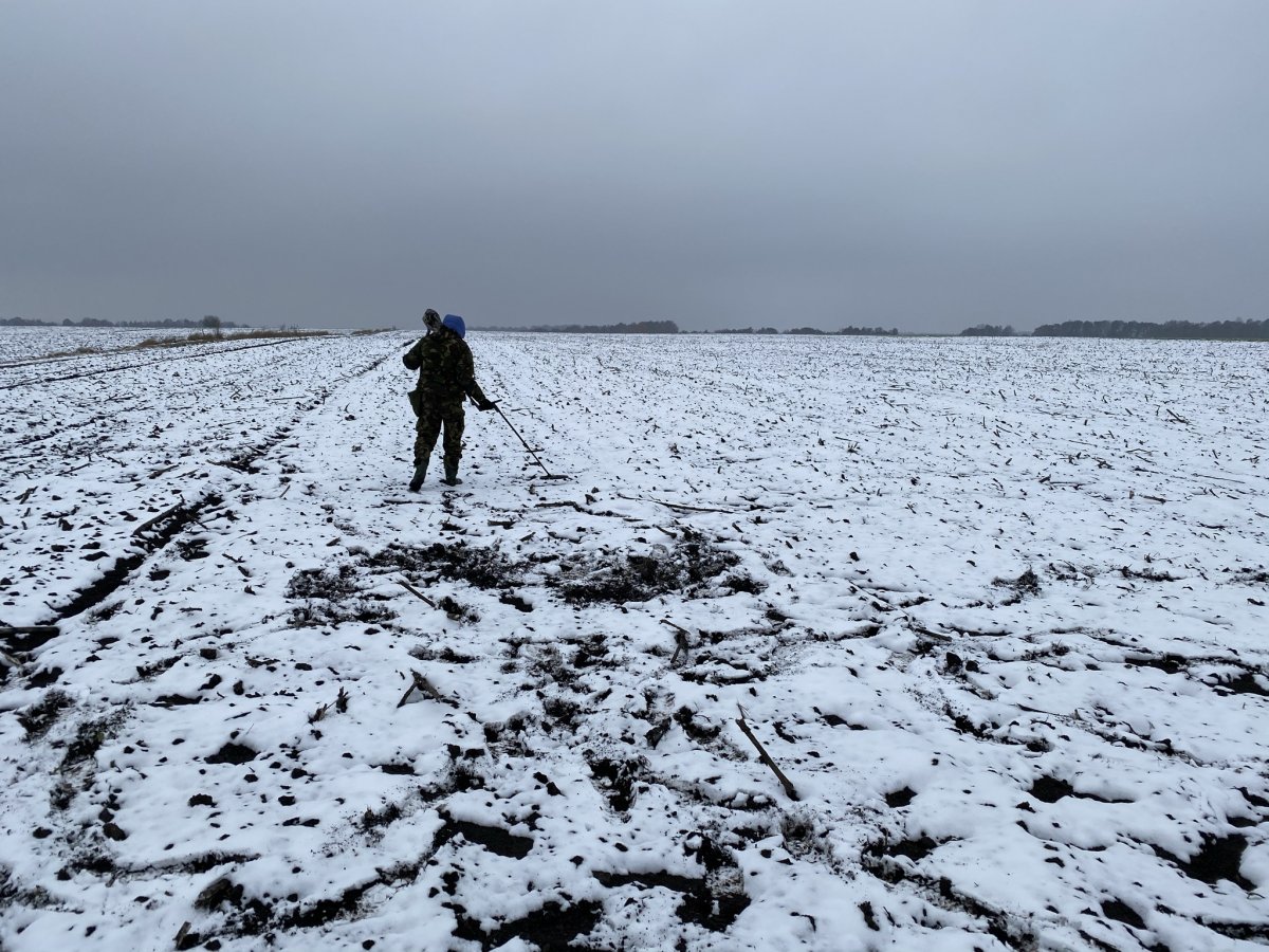 Эпидемическая ситуация в Украине на 19.12.2020: 956123 человека заболело 16469 человек умерли 99694 человека заболели в Киеве. _____________________________ Значит, как только закончился гололёд в столице и области: Поехали мы на разведку в село Малый Карашин, за 70 км от хаты: https://www.google.com.ua/maps/@50.3462408,29.638675,73m/data=!3m1!1e3?hl=ru Грунтовки сейчас не очень, лучше не соваться самому: Копается земля офигенно, не холодно, проводимость почвы изумительная: Походили, поискали - война и монеты, надо ещё куда-нибудь подскочить: К обеду грунтовки стали вообще плохие: Подрулили на фонарь к Здвижу и покопали ещё 59 минут. У коллеги попалось что то похожее на нож по Бронзовому веку: У меня война и две дореформенные монетки. Попробуем ещё что-нибудь пошукать...