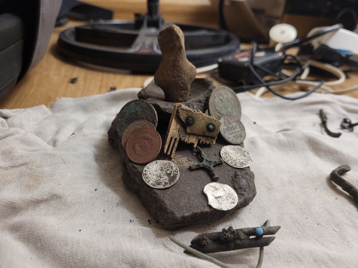 Много видели золотых и целых крестов по КР в радиусе 60 км от столицы в конце апреля 2021 года? Добрый день! Находок в этом году поменьше, чем в прошлом, стараемся из всех сил, но они (находки) к сожалению не растут Ну и командная работа, безусловно. Я годами вычислял места, разрабатывал маршруты, собирал и возил туда людей, все находили там то, что хотели, теперь начинают приглашать уже меня на свои места. Вот, к примеру, вернулась наша вторая команда из-под Ружина сегодня, нашли новое место по ЧК, не указанное на картах, 2 км длинной, мало битое, денарчики+фибулы+сопутка. И вот я уже рюкзак собираю на несколько дней Добрый бумеранг возвращается... Творите добрые дела и поменьше затворничества в копе Конечно. Свернули и в пакет. В Киеве выбросим