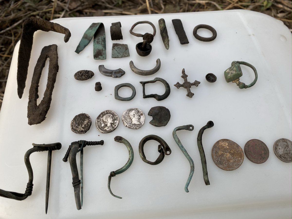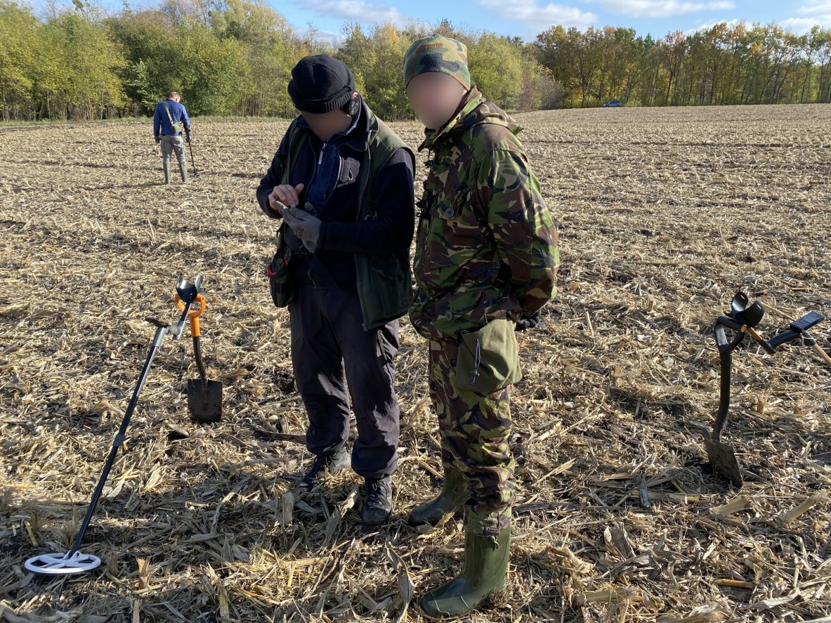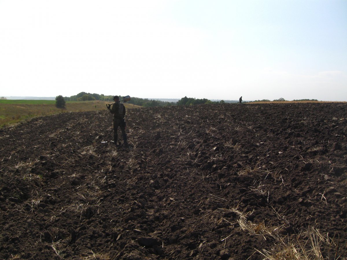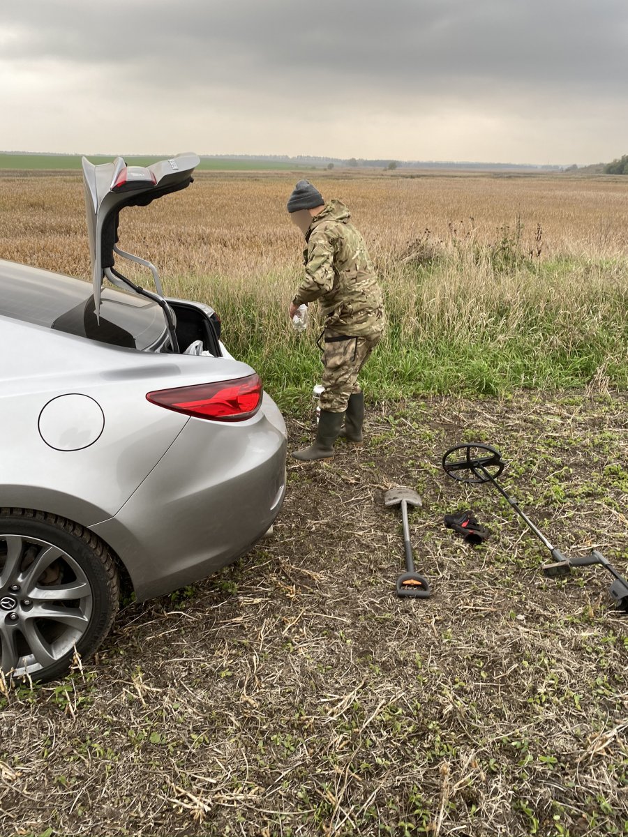 Эпидемическая ситуация в Украине на 26.09.2020: 195504 человека заболели 3903 человека умерло 21492 человека заболело в Киеве. __________________________________________ Вчера, в субботу 26.09.2020 мы собрались с копателями с Reibertа на поле возле села Б. Бугаёвка Васильковского района. По форуму все друг друга давно знают, решили покопать все вместе и пообщаться, так сказать, в реале. Приехало много народу: К большому сожалению поля к нашей встрече ещё не подготовили. Везде стоит стерня, в одном месте виднелась микро-перепашка, ещё на одном поле - неглубокая дисковка. Формат нашей вечеринки смахивал немного на пиратский, это, типа, как пятнадцать человек на сундук мертвеца, йо-хо-хо, и бутылка рома... Разные приборы, разные траектории поиска выдали на первом месте немного старинских находок. Из древностей попалась бронзовая проколка, красивая поясная накладка КР, денарий и фрагменты серебряного украшения. Копали часа четыре, сундук мертвеца не обнаружен: В два часа дня было принято коллегиальное решение похавать и переехать ещё куда-нибудь. Поесть на свежем воздухе - это вполне то, что надо для потратившего силы копача... Второе поле встретило нас соевой стернёй и несколькими монетными сигналами: Часам к шести вечера решили закруглятся, сигналов мало, тратить время и упираться на поле нет смысла. Офигенно покопали с форумчанами, рад был всех видеть. Как то ещё повторим... Находки нашего подельника: Находки Mustang921: Находки semb: Остальные коллеги, как сфоткают свои трофеи, добавят попозже. У меня была - маленькая пуговица гирька по КР, одна дореформа и царская пуговица. Как там говорил Семён Семёнович Горбунков? Будем искать...