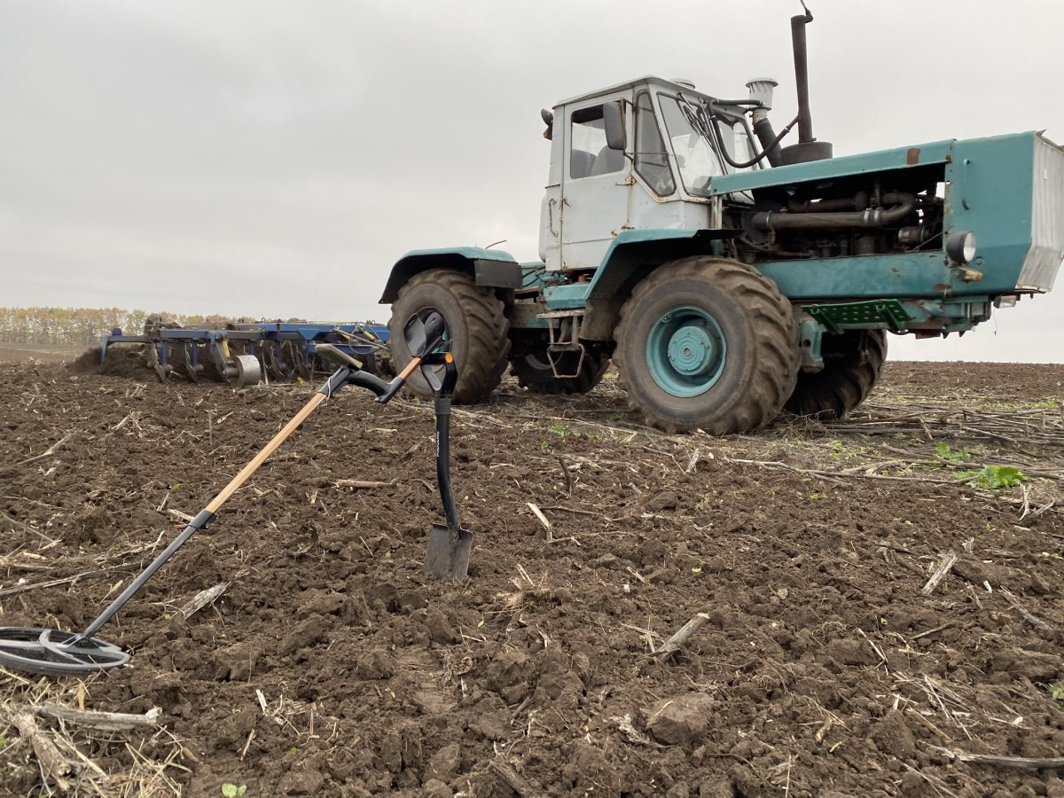Эпидемическая ситуация в Украине на 08.10.2020: 460331 человек заболели 8450 человек умерло 44172 человека заболело в Киеве. __________________________________________ Поехали сегодня в велоразведку по Обуховским грядкам. Типа, посмотреть, где и что попахали: Много полей уже под озимой, но есть несколько интересных вариантов. На одном из них работало древнее ведро Т-150 с дисковой подвесной бороной: Можно трошки походить за ним: Из красок на дворе осталось осталось только жёлтая, красная и немного зелёной: Вдалеке наблюдалась конкурирующая организация, состоящая из двух работников приборного поиска: Скудненько в наших огородах У соседей нарядней. Ещё и пахать не хотят, находок от дисковок не прибавиться... Мои сокровища Агры: До морозов будет ещё...
