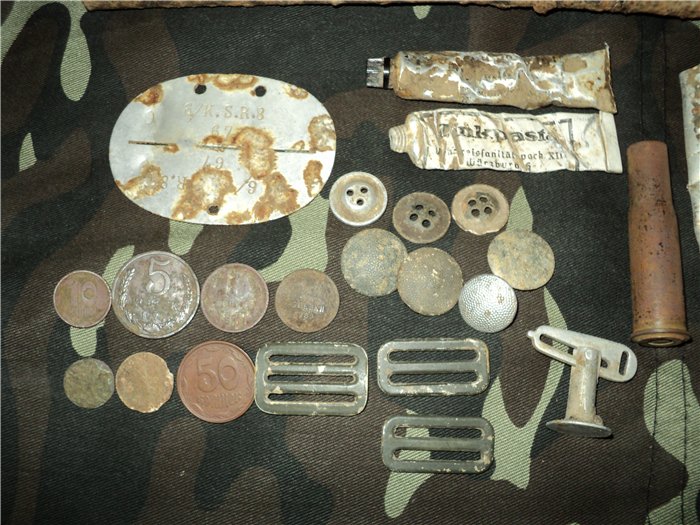 Сезон підходить до завершення,погода псується ,вчора погода була непогана, і я поїхав закривати сезон ,хоча якщо погода в грудні буде прийнятна то сезон триватиме .Знахідок небагато - день короткий часу мало ,місця підвибиті. Порадував цілий люміньовий жетон вояки вермахту,попалась кірка напевно ще з воєнних часів, ножни викопались без ножа, мабуть штик підібрали аборигени щоб колоти свинок, ну і монеток накопалось правда не дуже старинних