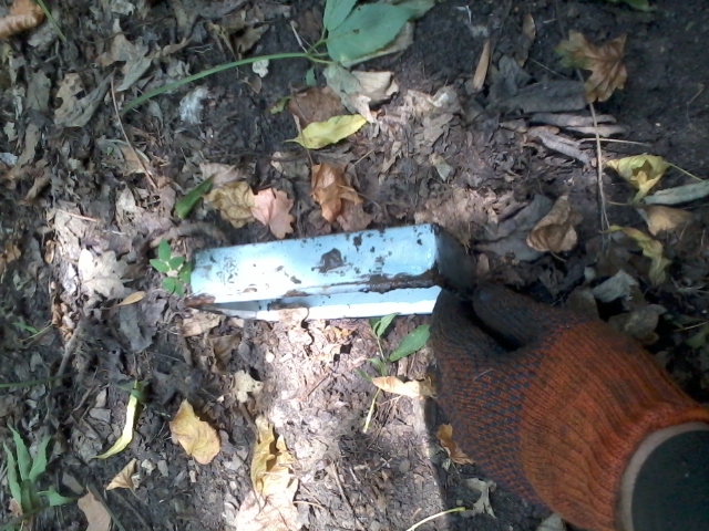 И ещё немного шмурда. Труба толи от техники, толи остатки 45мм миномета... хз. стенки толстые, "дуло" разворочено, дно выбито, ржавое ППЦ. в труху.