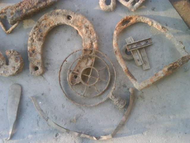 Смітюшники хоч і бідненькі, але всерівно радують всякими закарлючками . Ось і останнього разу випало 24 підкови ремінець на пікельхельм, та цікава бутилочка. Маса хороших мензурок були вже побиті. З пов. Чур P.S. Вибачайте за погану якість фото.Телефон.