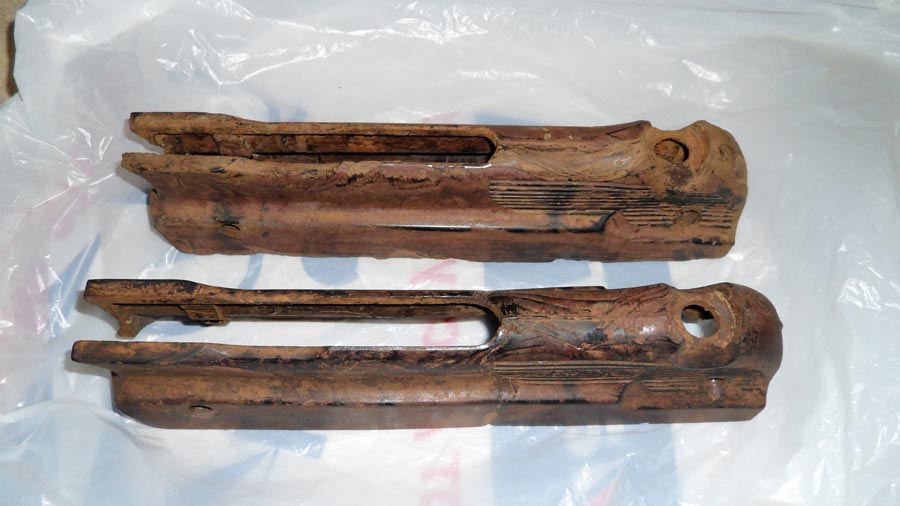 Обломки прикладов МП. 1000 рублей. Жбонь к 98. 300. Жбонь разная (низы приемников, рычаги...) любая железка - 300 рублей. Рога Стг. Нижний мятый. Любой 1000.