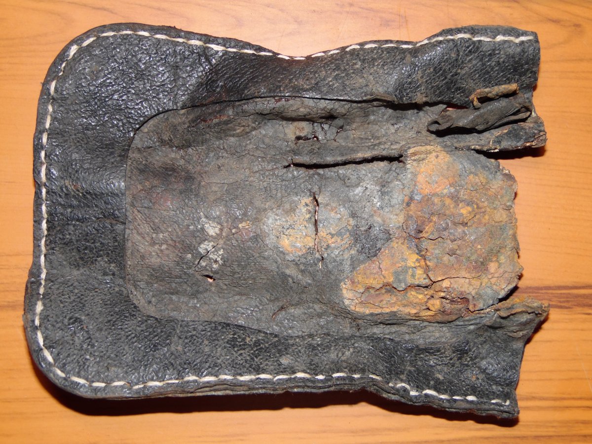 2. Бывший чехол на саперную лопатку, кожа, как резина. Два крепления на ремень, от чего не знаю. (лопата?) Состояние кожи среднее.