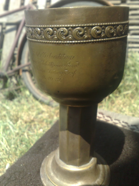 На кубке надпись : В честь 60-летия председателю Стрелкового общества г. Follstein & Ludwigsdorf. Соберешься расстаться- стучи, можем махнуть на что-нибудь из немцев.