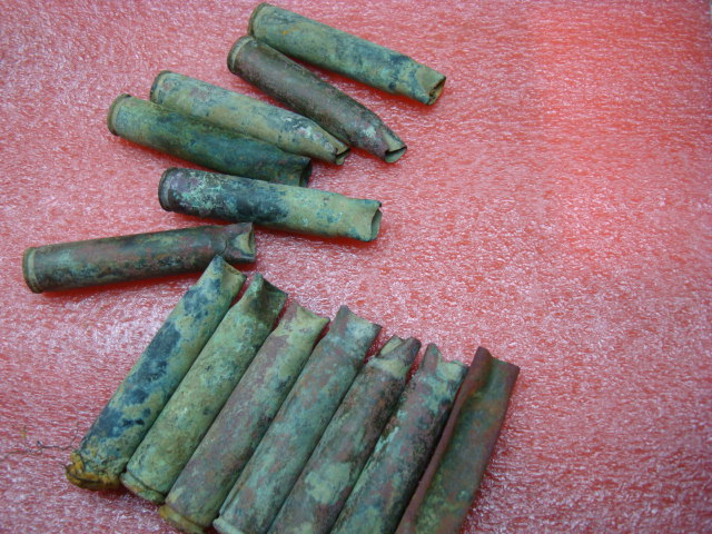 С вашего позволенья , подниму тему Передовая линия немецких траншей . Маузеровский и МП-шный настрел в количестве . Фронтально на бруствере траншеи гильзы валяются , но в гораздо меньшем количестве , чем на скате тыльной стороны. траншеи . Примерно в пяти местах ( на 50 метрах траншеи ) гильзы просто кучей . В одном месте набрал ведро , плюнул и остальное закопал . Ну и собственно вопрос . Почему гильзы на тыльной стороне траншеи ( не на дне окопа , а именно на скате ) ? Планки для быстрой перезарядки присутствуют . Котла там не было , немцы организованно отошли . Как это может быть ? С ув.