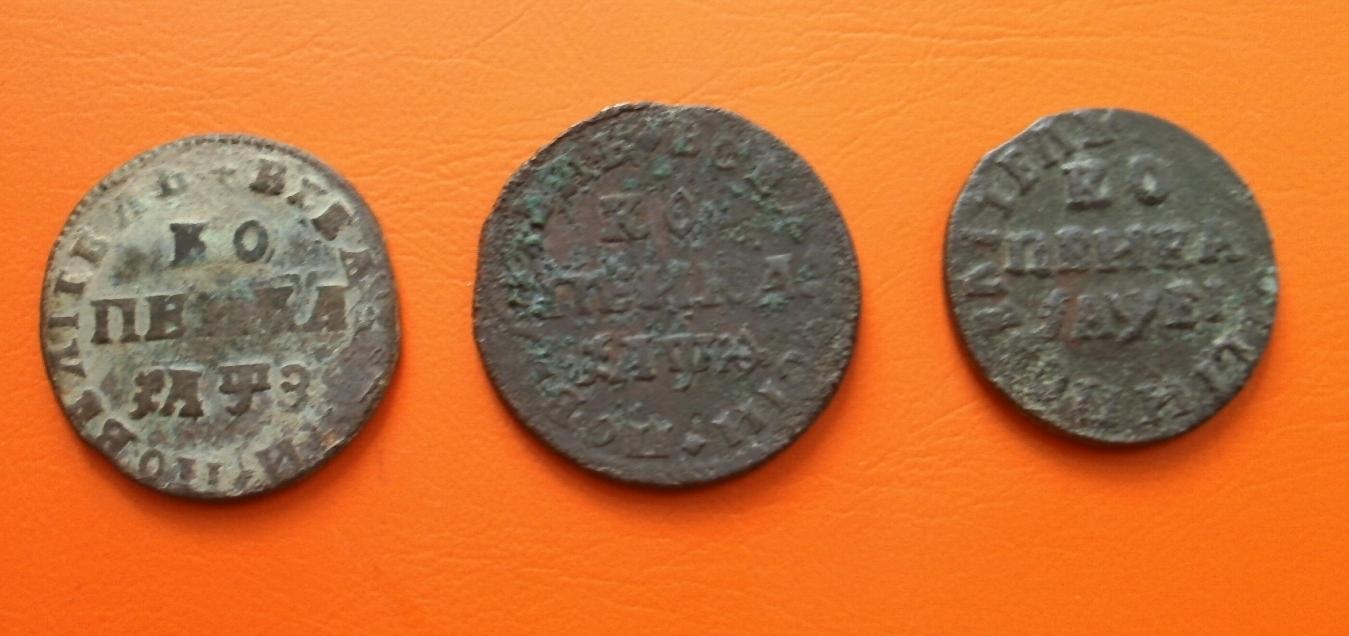 Продам копейки Петра 1 коп.1707 год 150гр коп 1709год 200 гр. коп 1715 год 150гр