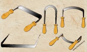 Так, дуже нечасто, але траплялись. Я раніше був впевнений що це через те, що іми кокистувались "неправильно" - різали лише тою частною (стругали палиці діти напрклад), вона тупилась, відповідно потім тільки цю частину і підточували. Може дійно до гарбуза, але занадто хитроумна конструкція з рогаткою, ніби щоб тримати кут заданий легше було. А для гарбуза думаю це менш принципово. А чому ви вирішили що річ повоєна?