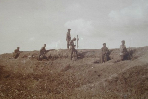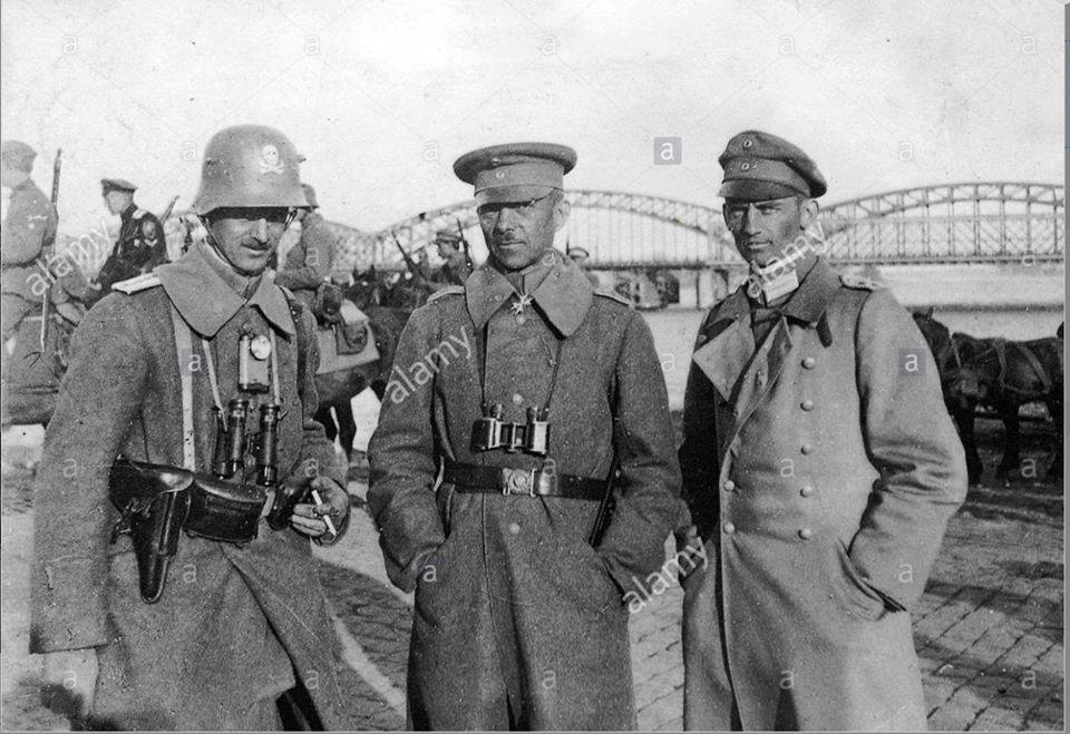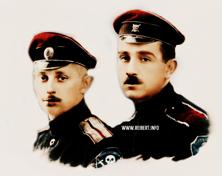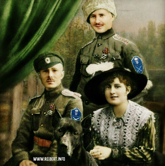 На фото запечатлен командир немецкой Железной дивизии майор Josef Bischoff с сослуживцами в Риге, на набережной Даугавы. В кадр попали Ливенцы и подпоручик Николай Константинович Маршалк. Его фигуру можно определить по Корниловской форме ВСЮР, которую он продолжал носить как в Латвии, так и позже, во время осеннего похода Северо-Западной армии на Петроград. Скорее всего фото было сделано в июне 1919г.