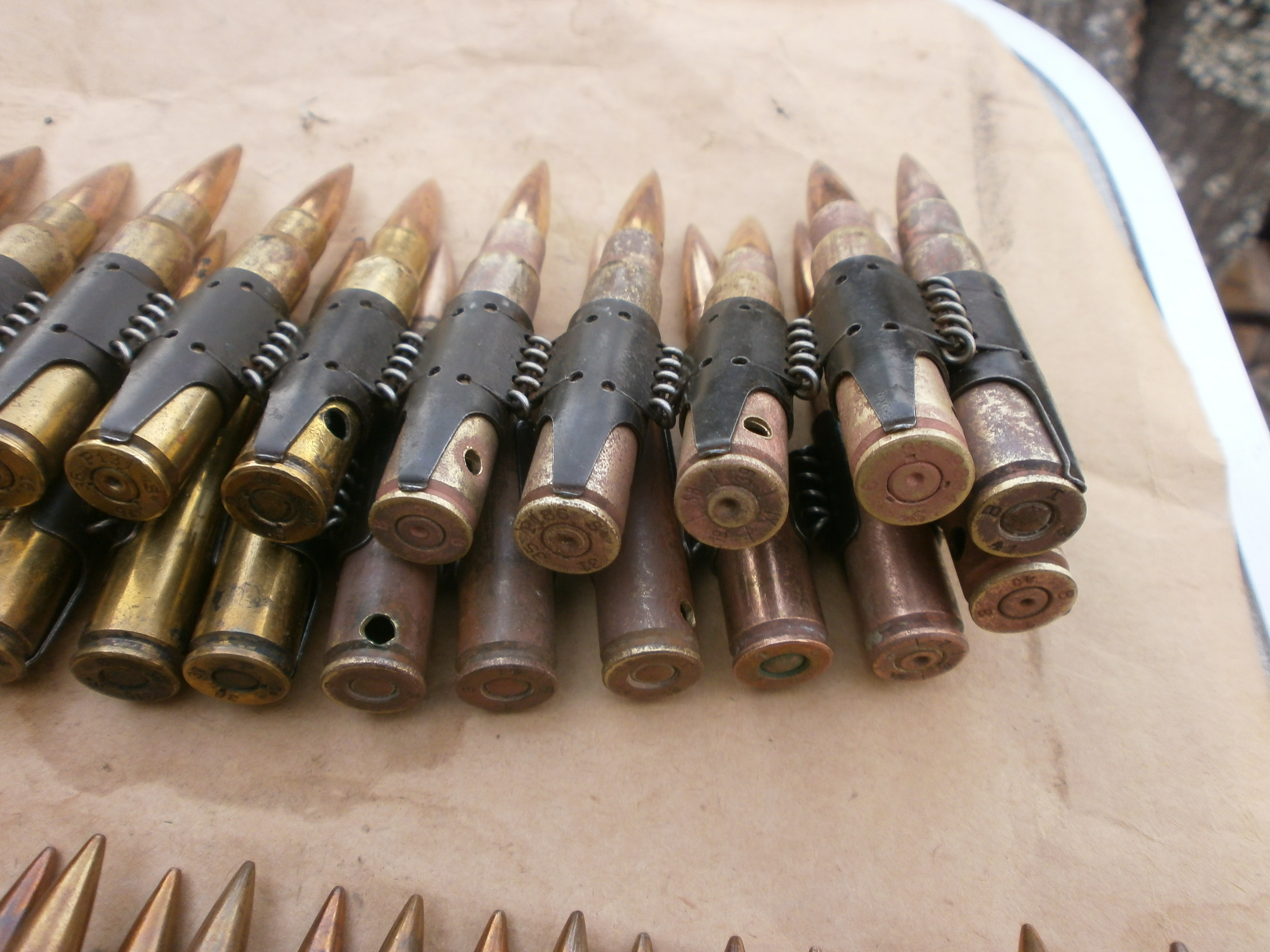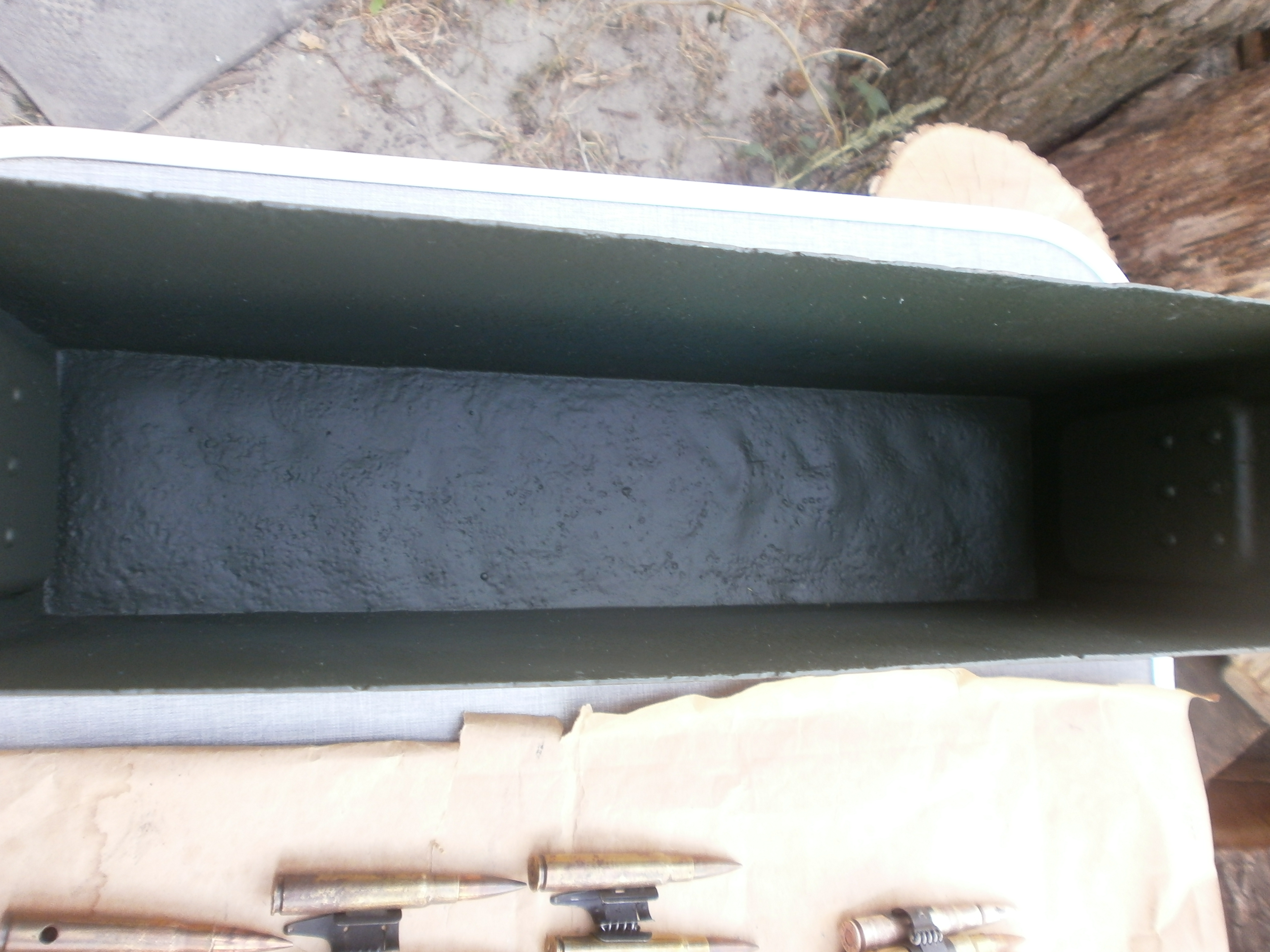 Ув. камрады подскажите-сколько стоит короб с лентой набитой ммг патронами от Маузера, лента склад из четырех отрезков-на каждом есть клейма! Короб железный , защелка работает хорошо, уплотнителя нет, клейм нет, покупал слегка шпаклеваным и крашеным, перекрасил краской филд грау и нанес матовый бесцветный лак! Благодарю, с уважением!